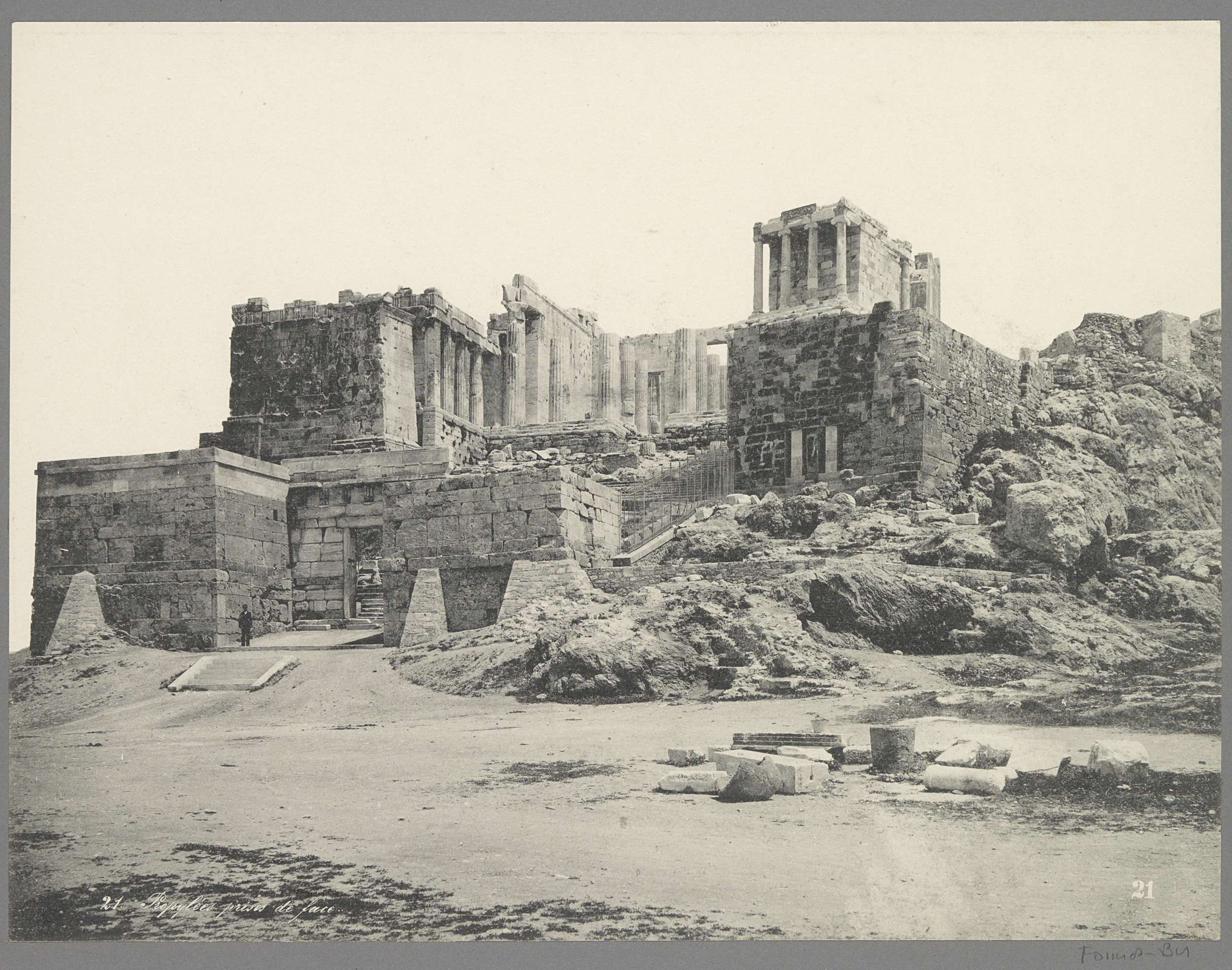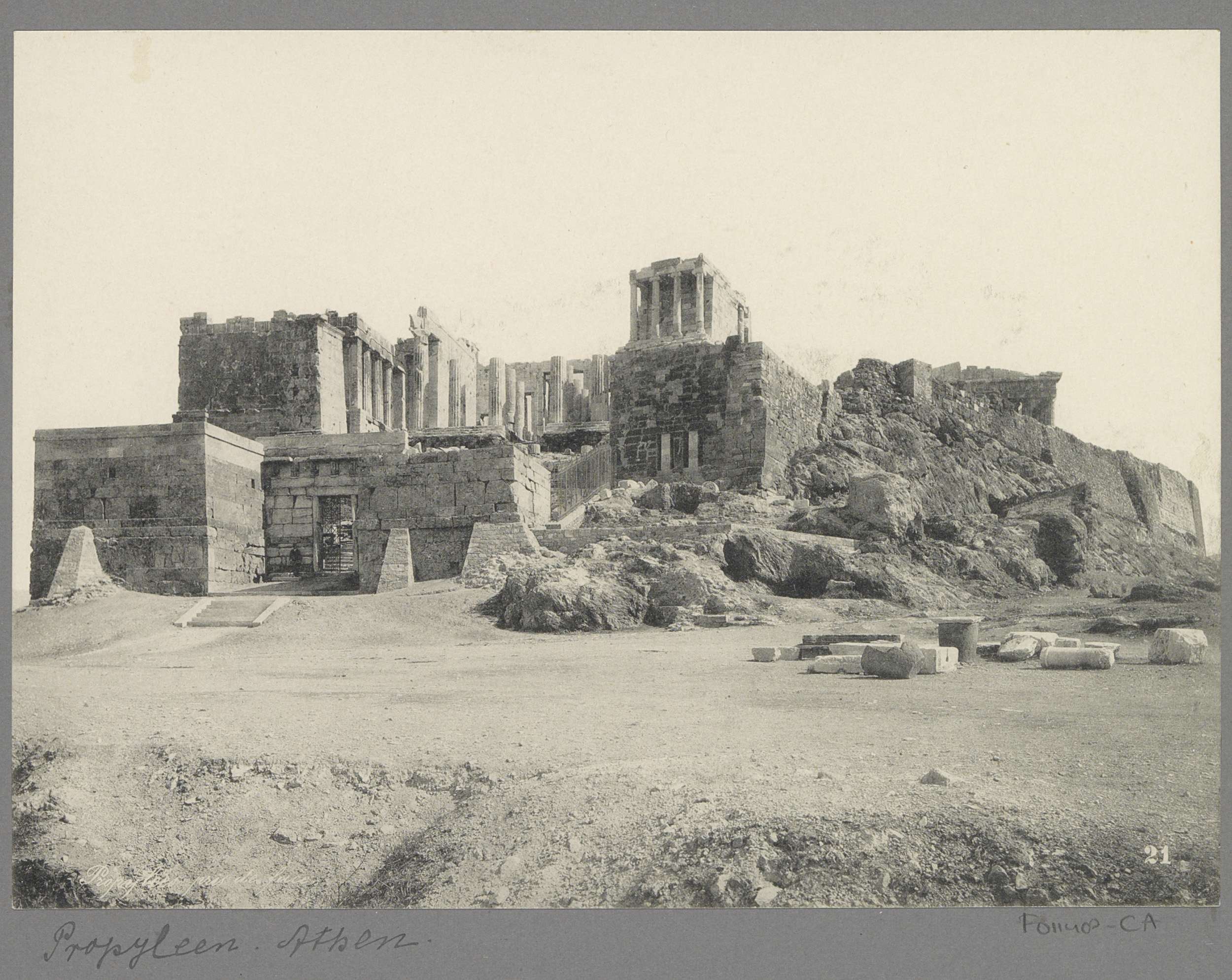 Gezicht op de Propyleeën van de Akropolis van Athene