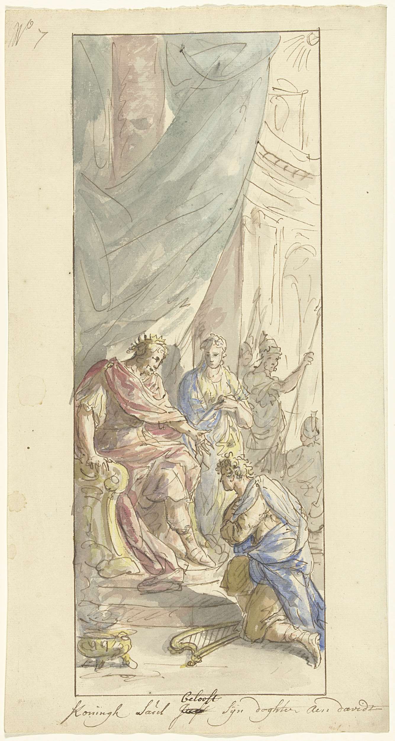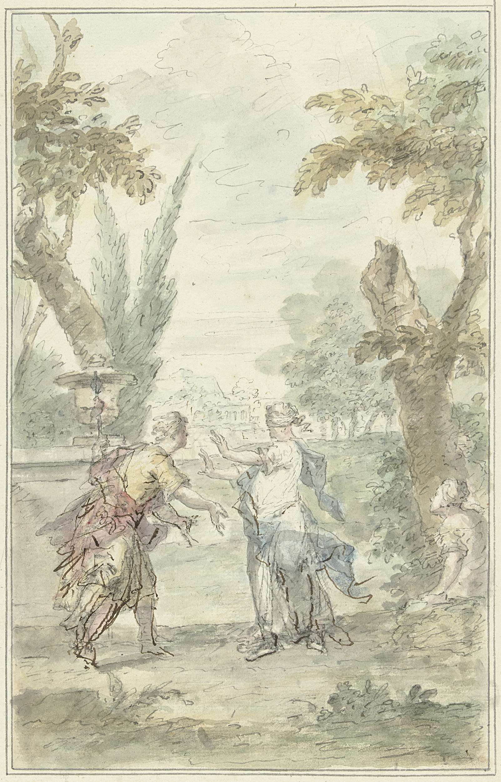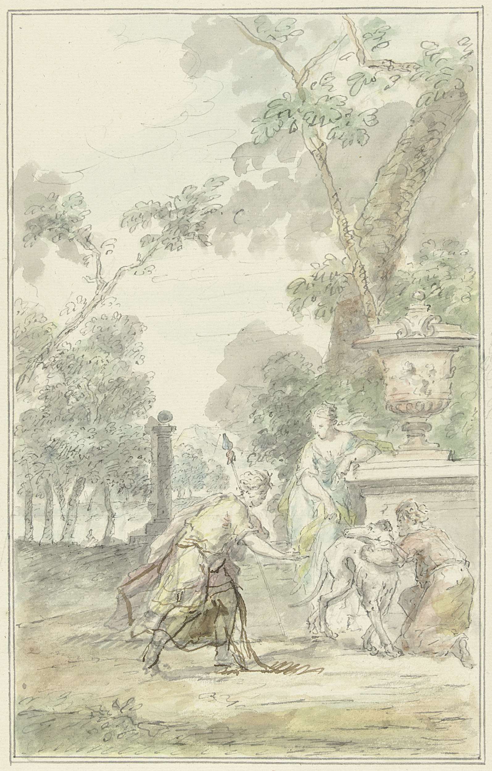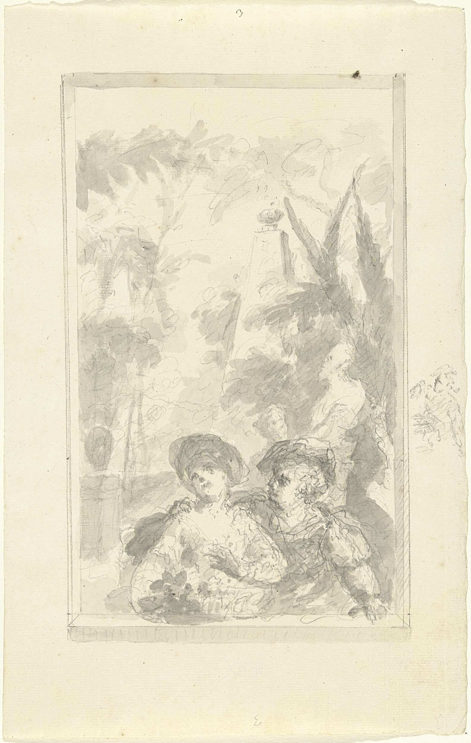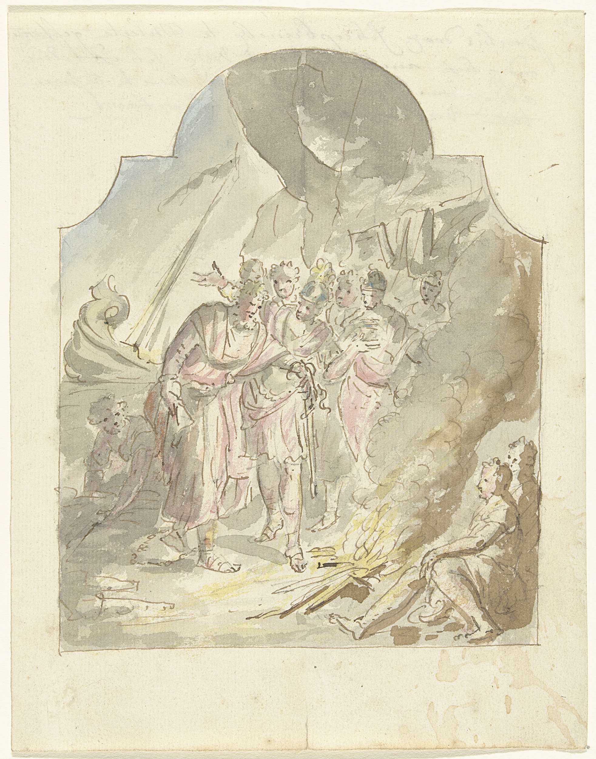 Ontwerp voor een zaalstuk: Dorinda geeft Silvio zijn...