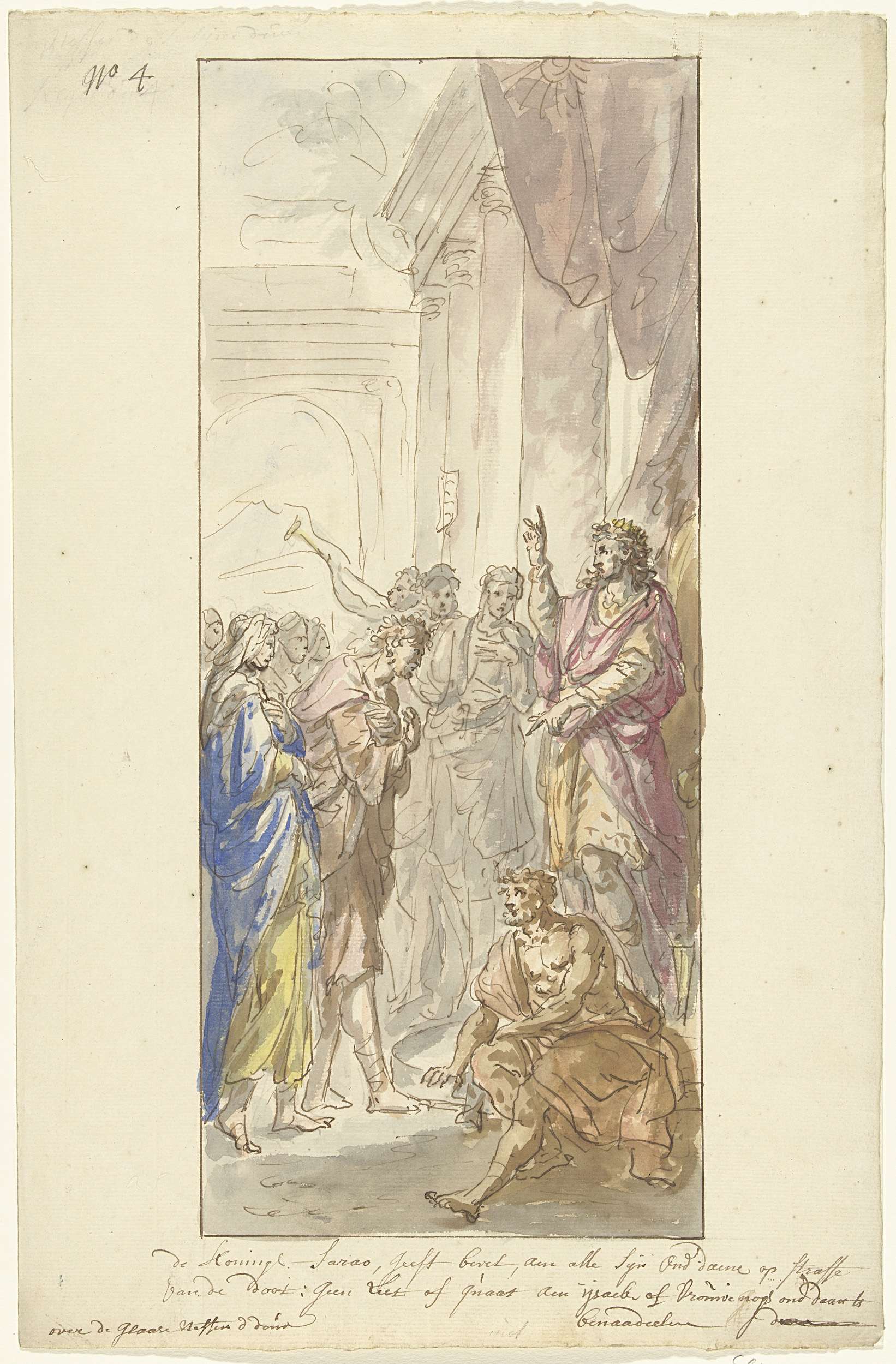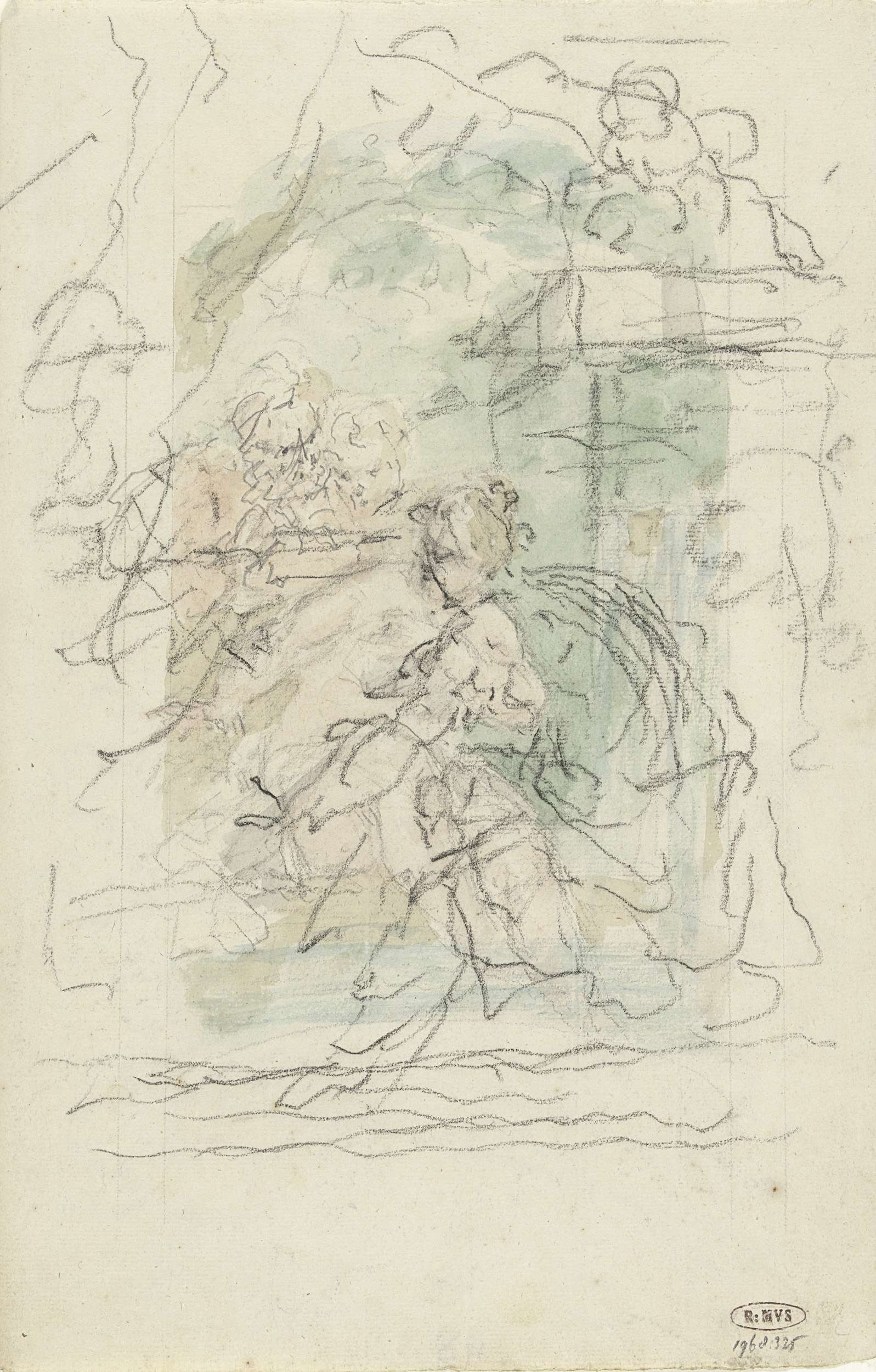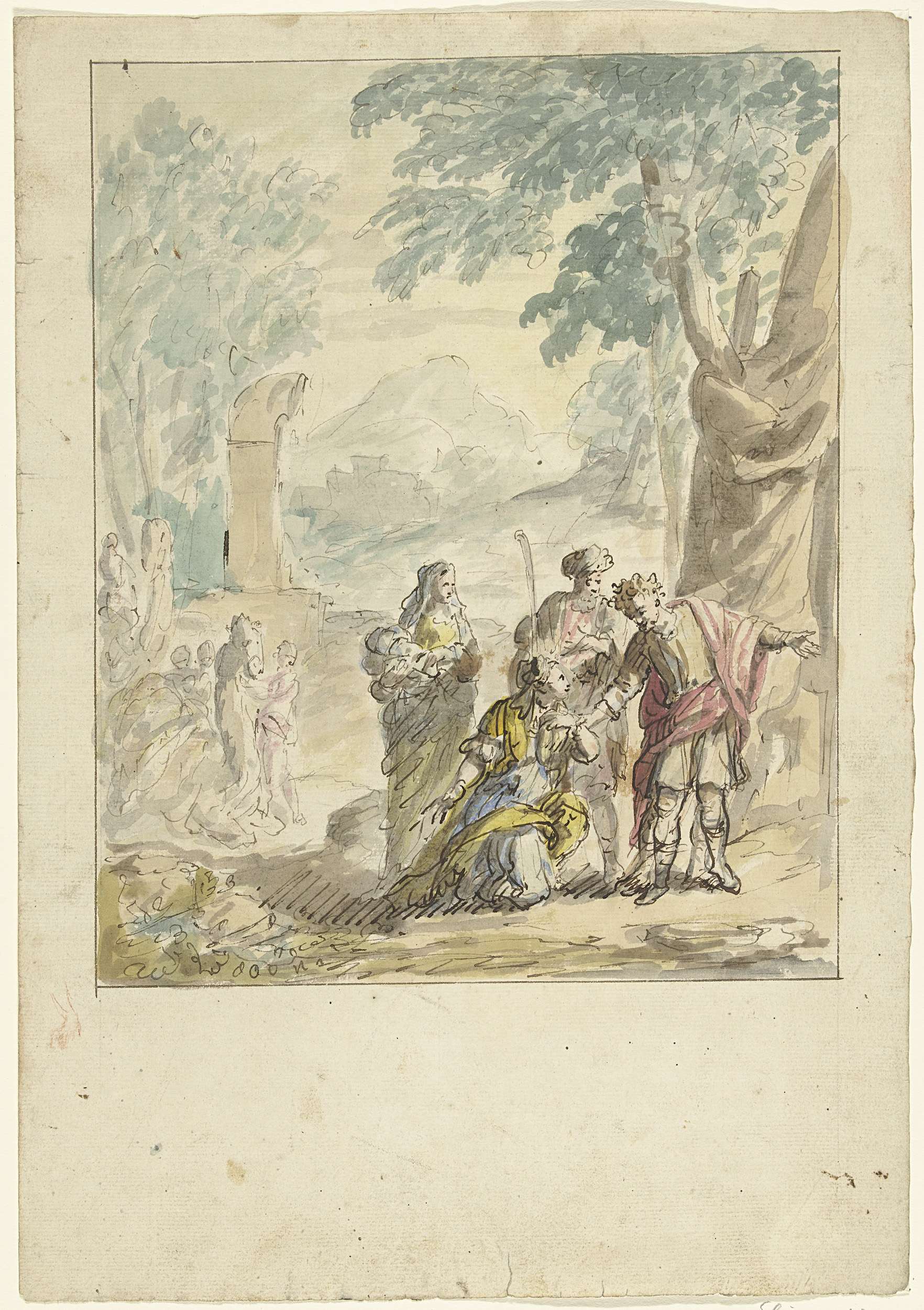 Ontwerp voor een zaalstuk: Dorinda smeekt Silvio om ...