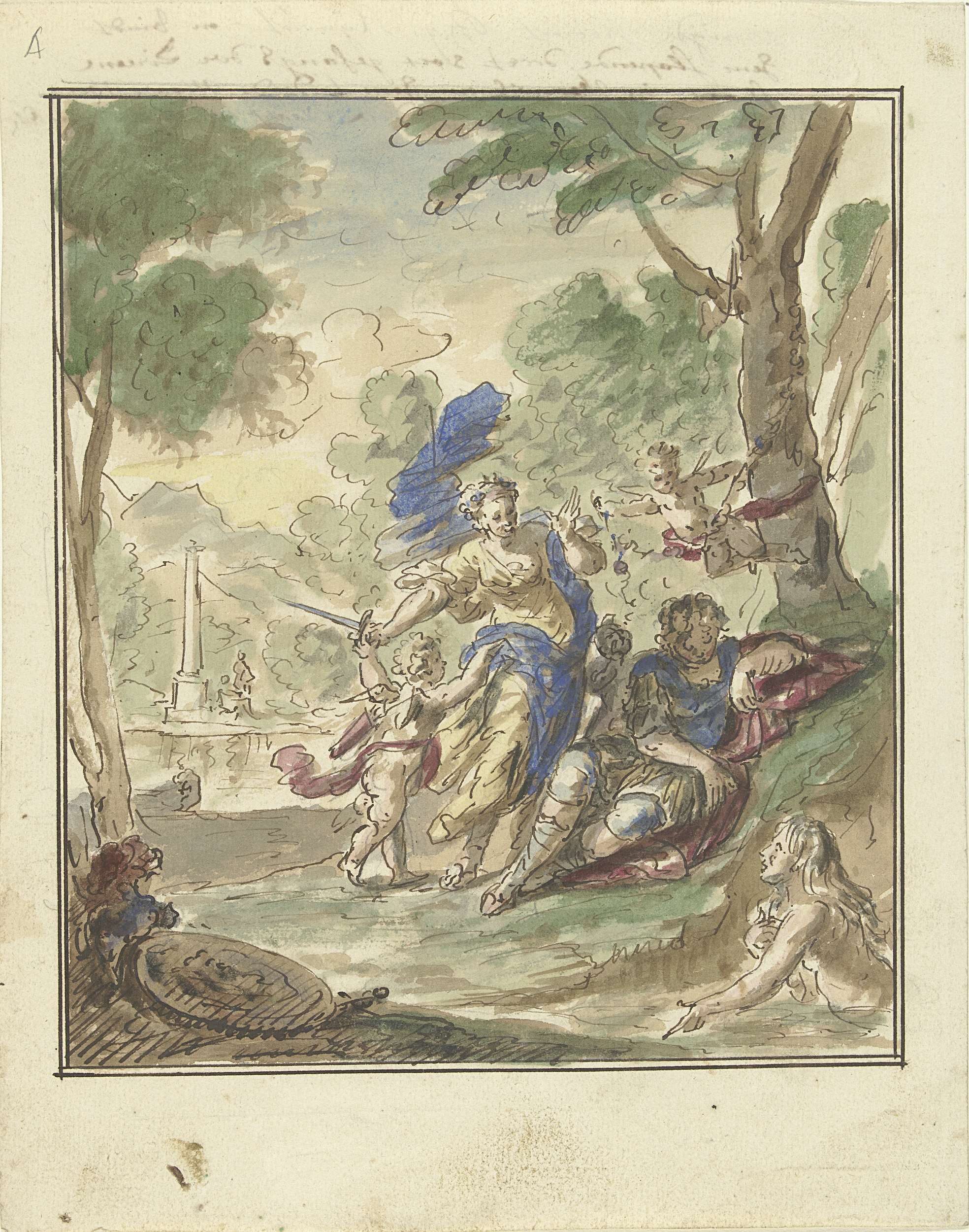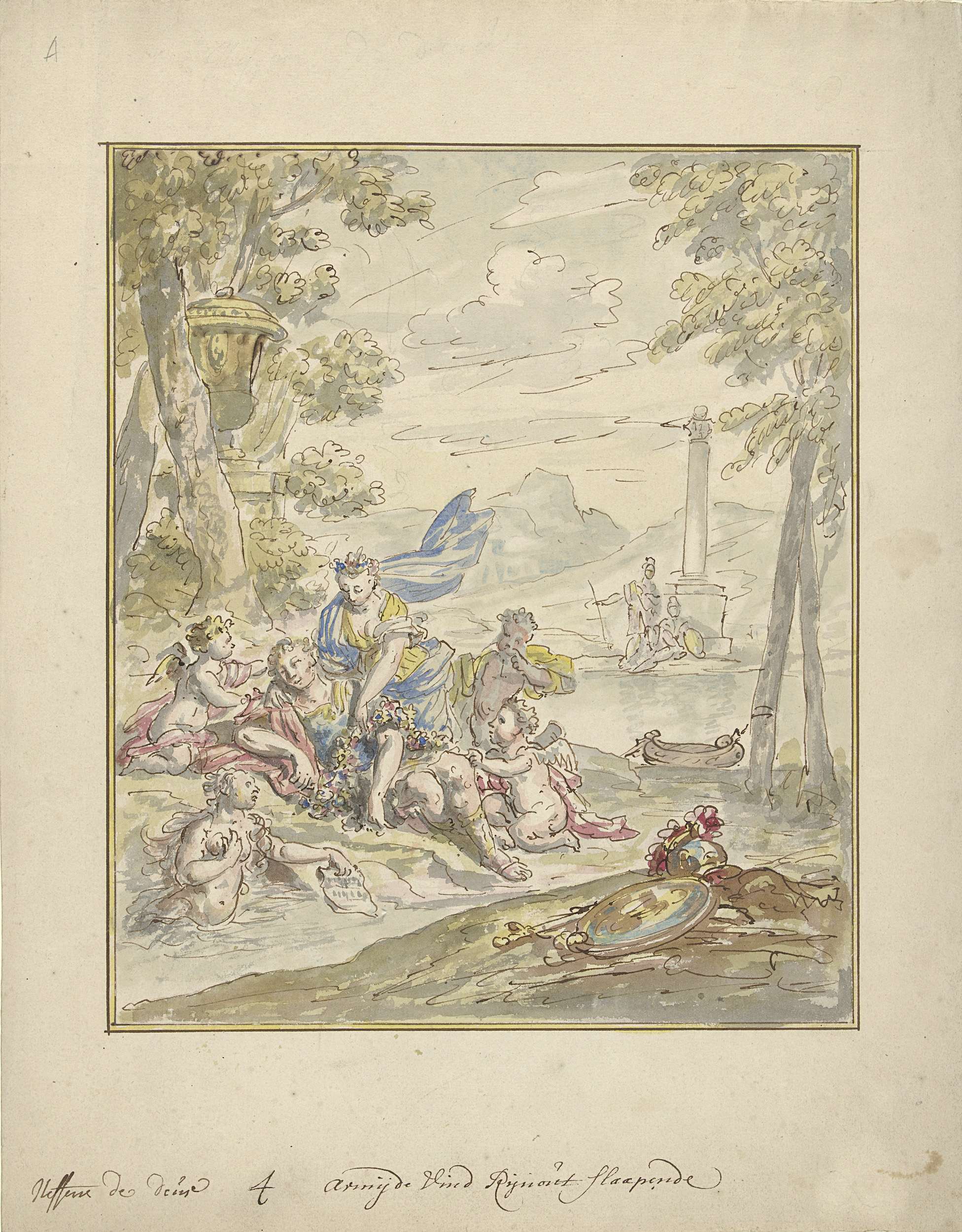Ontwerp voor een kamerbeschildering met Armida en Ri...