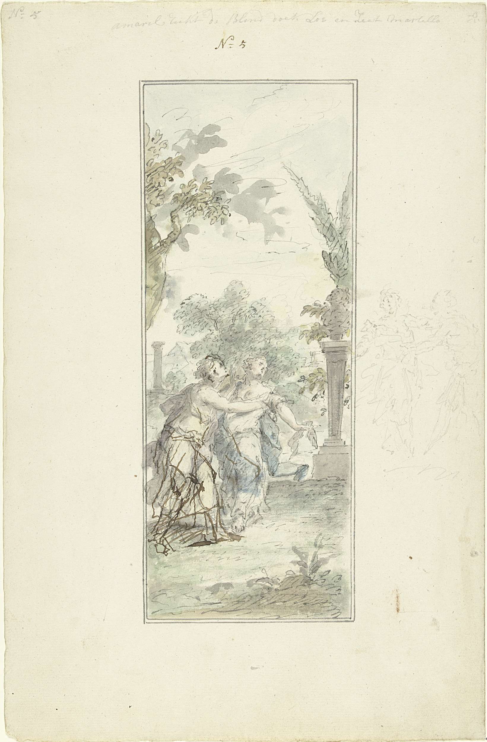 Ontwerp voor een kamerbeschildering met liefdespaar ...