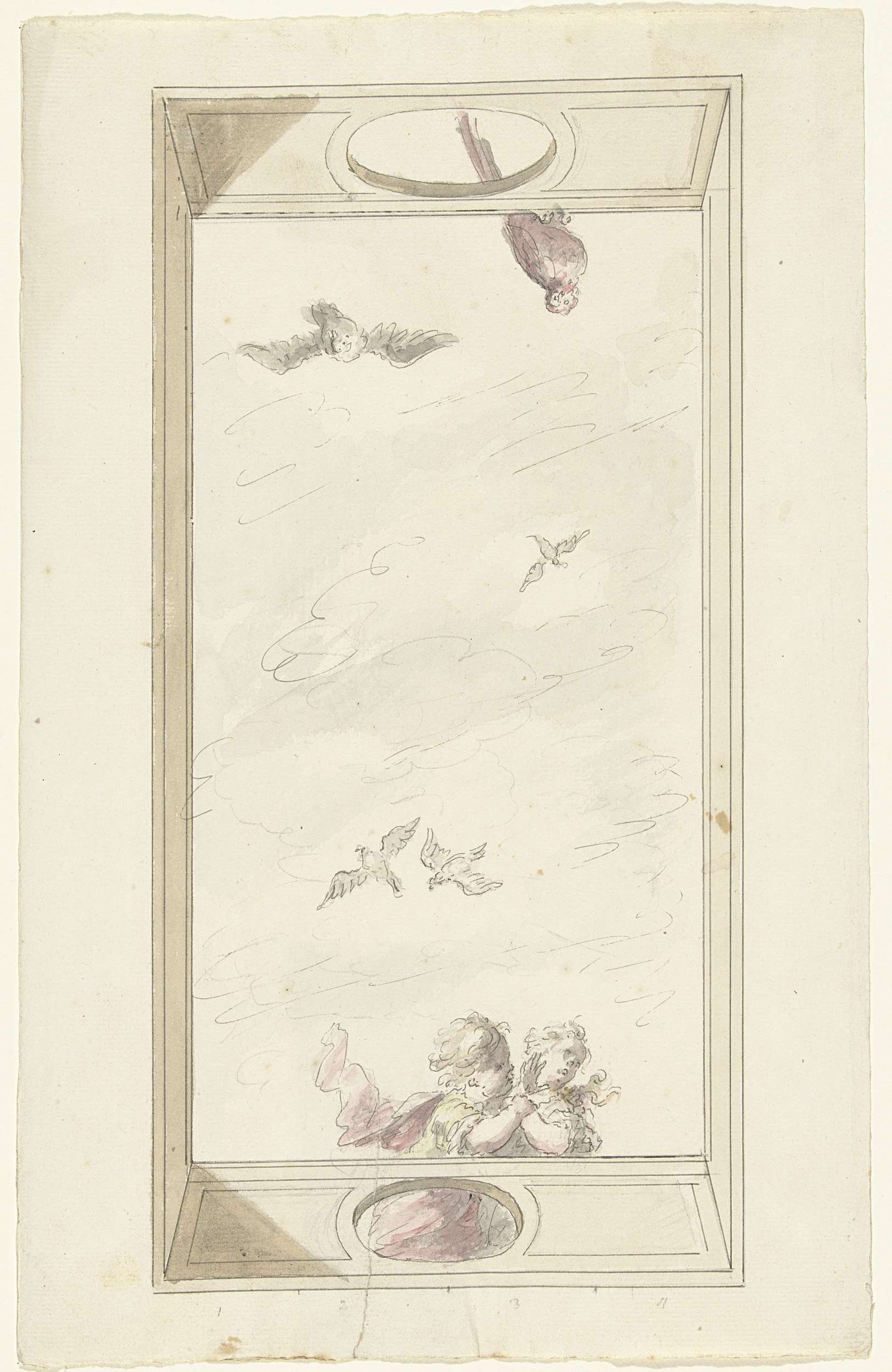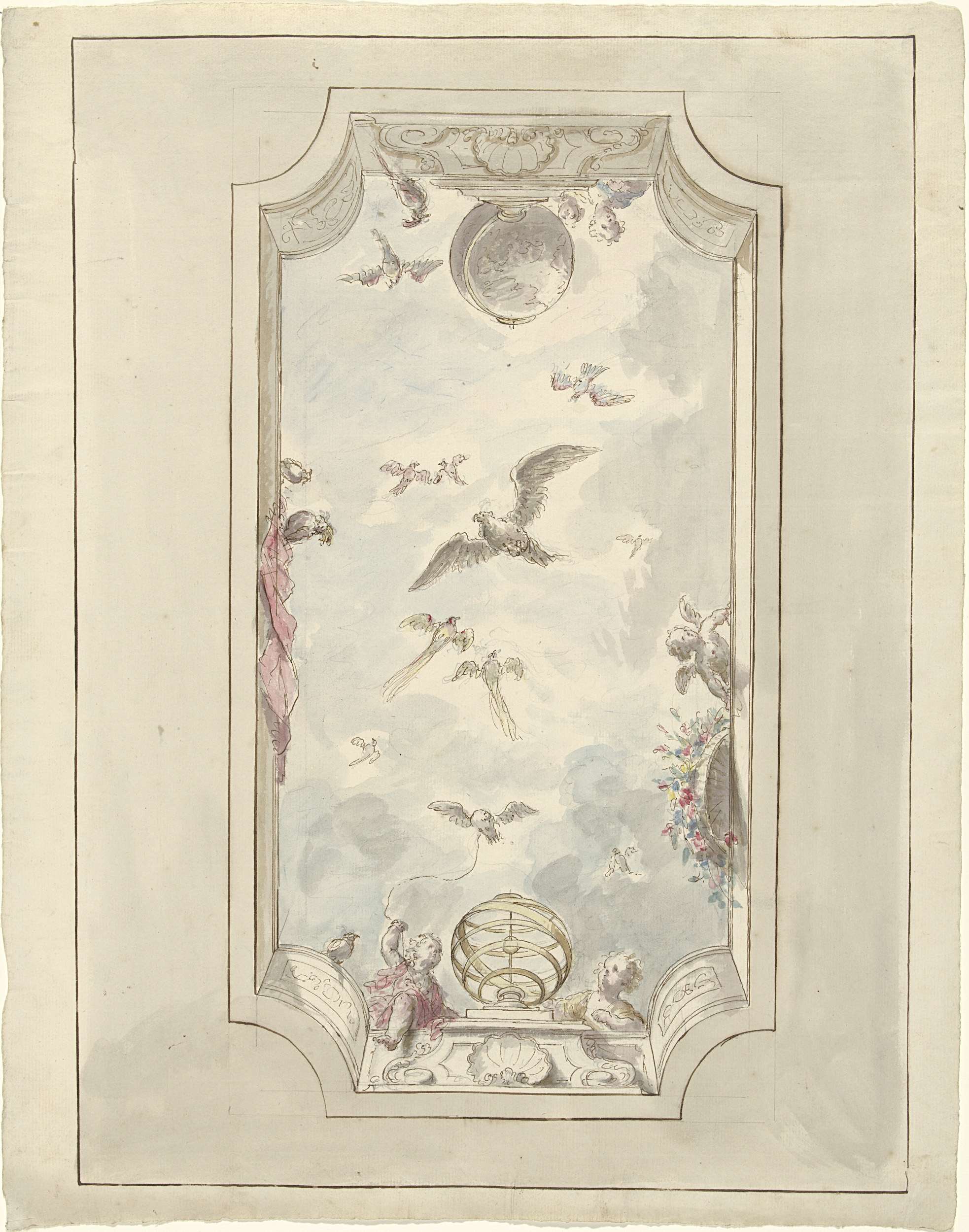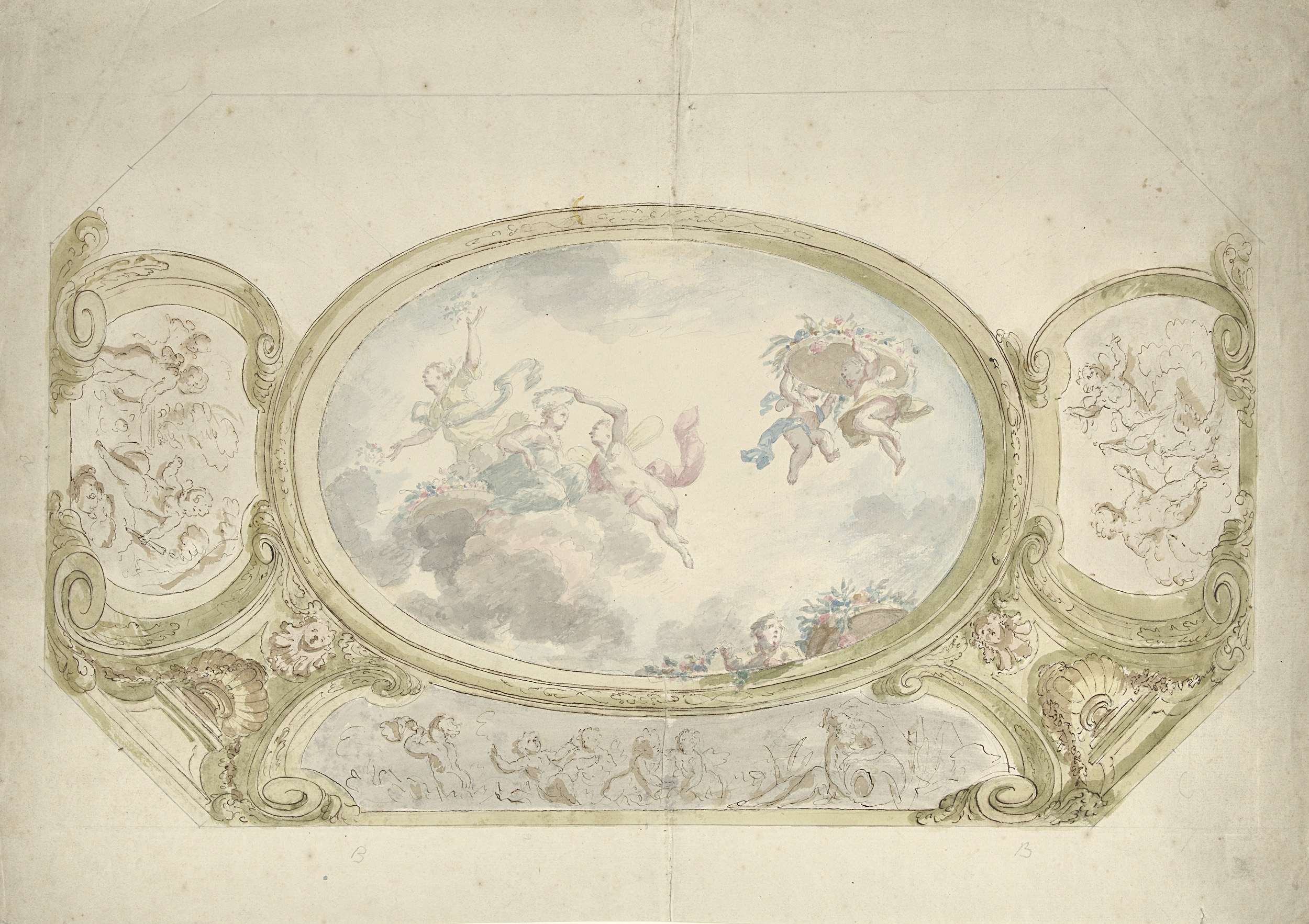Ontwerp voor een plafondschildering met een putto en...
