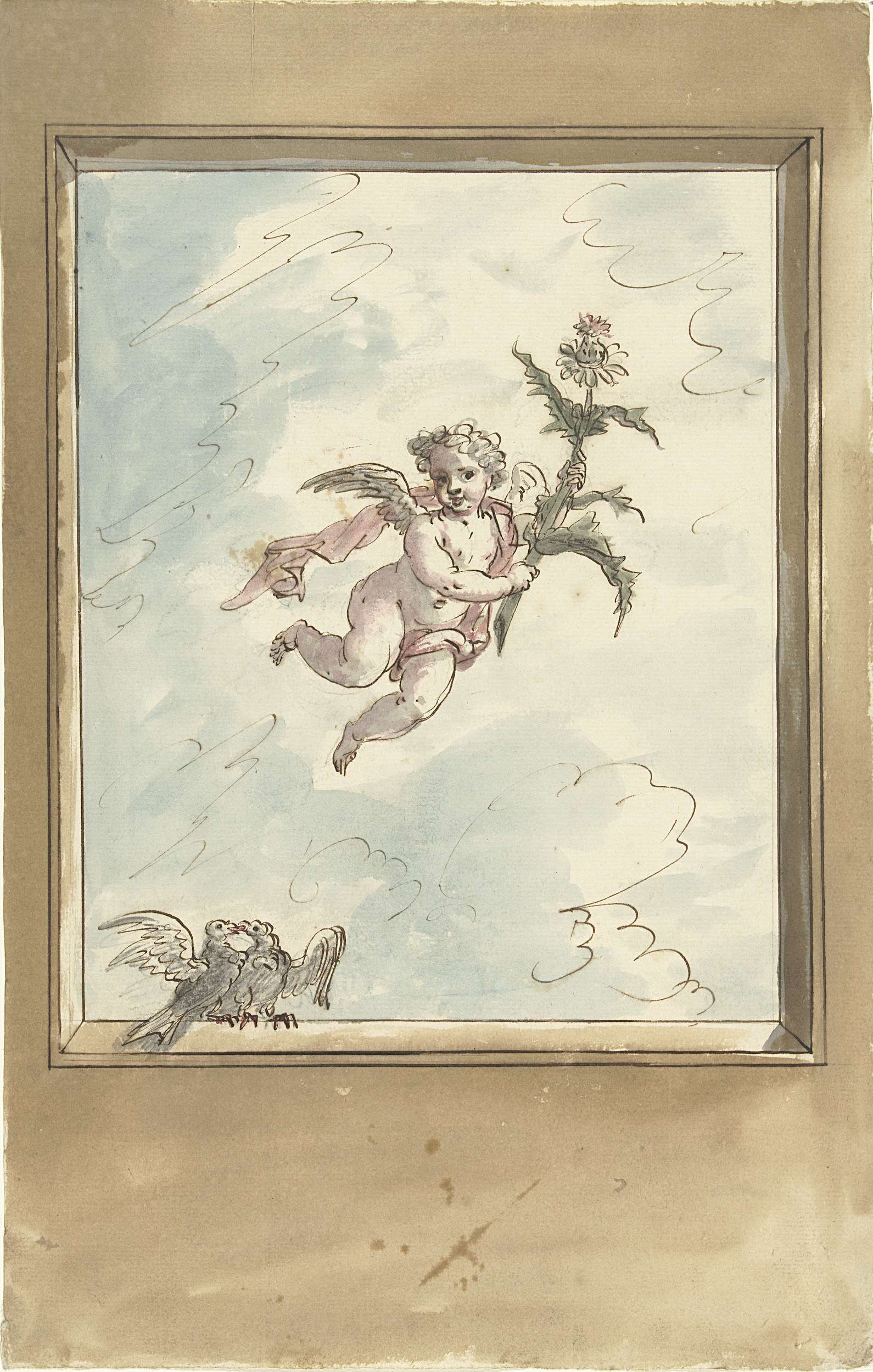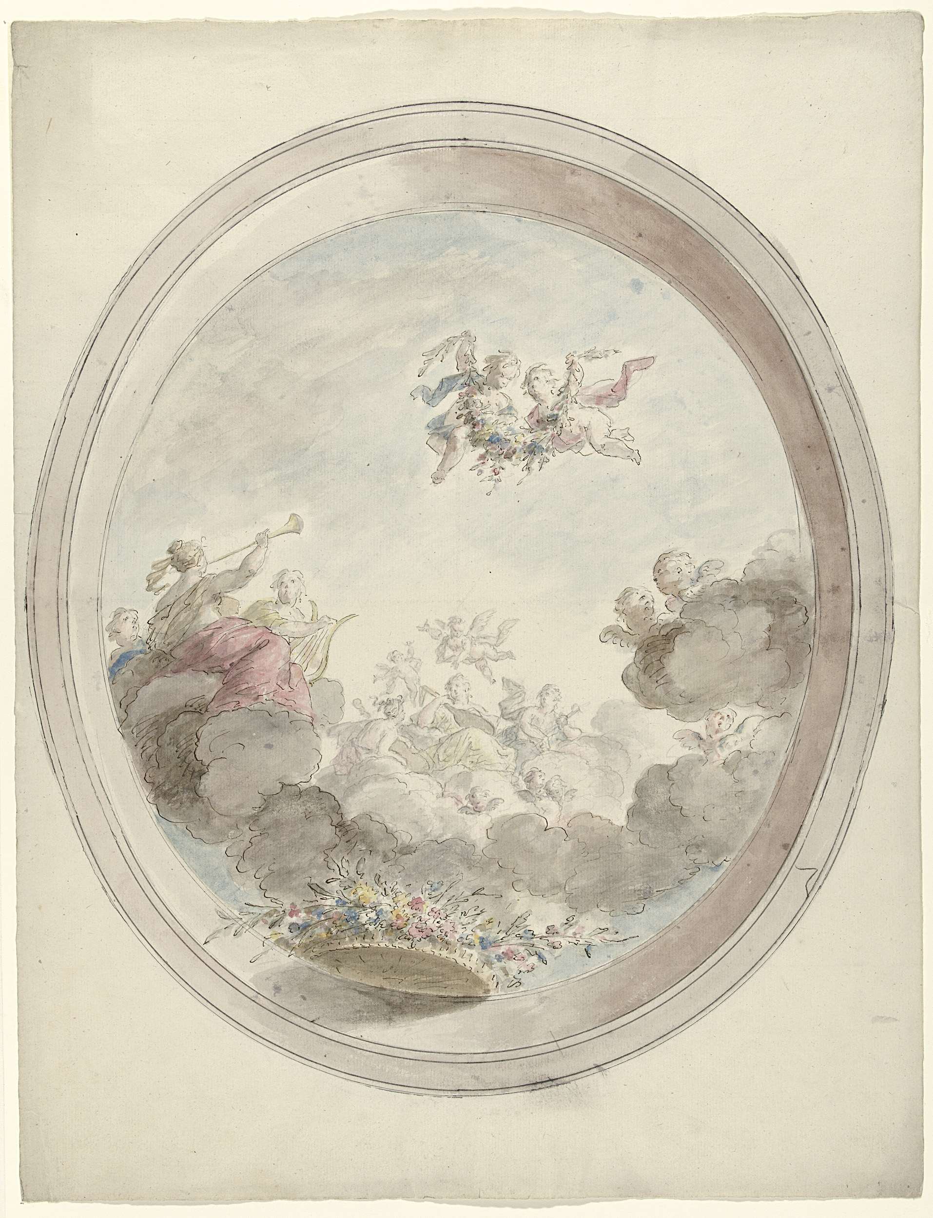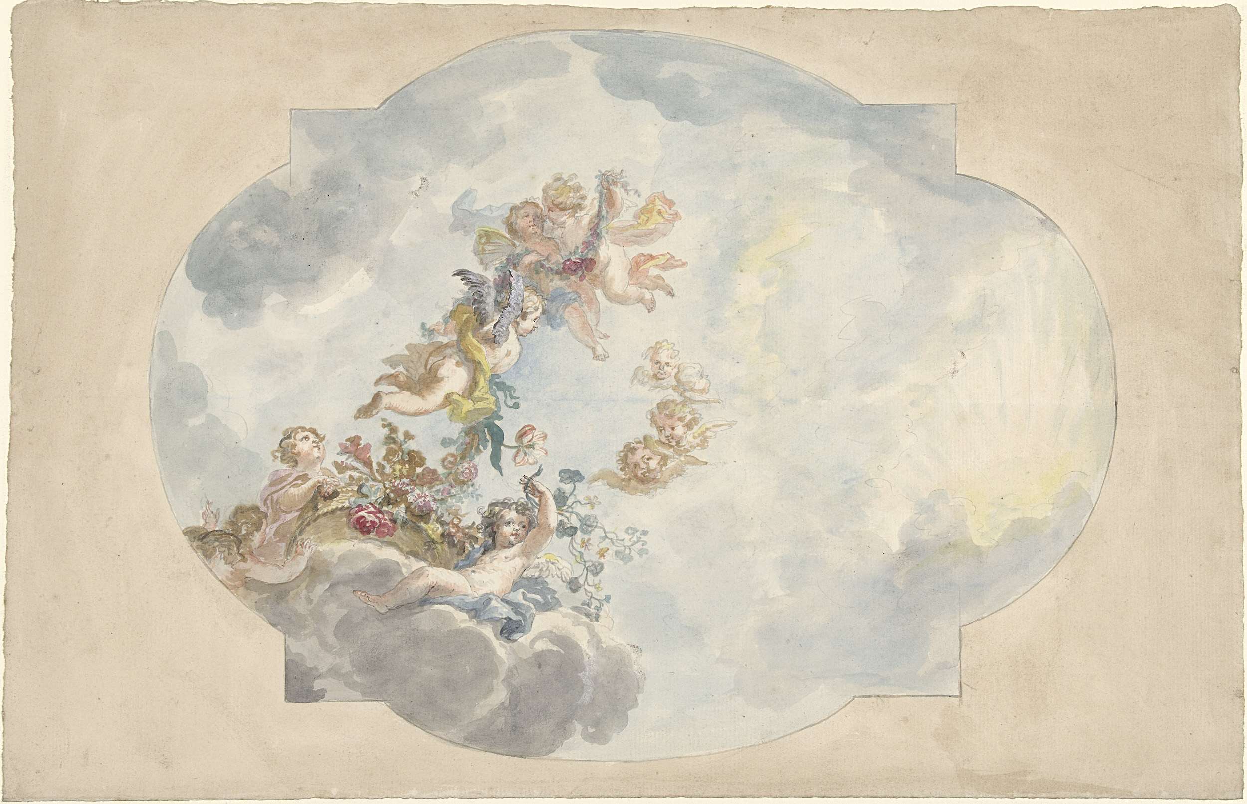 Ontwerp voor een plafondschildering met een putto en...