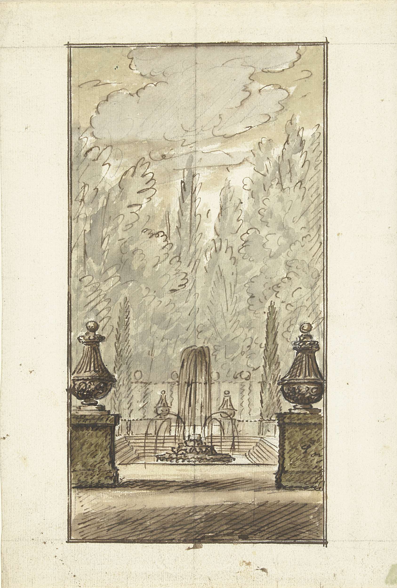 Ontwerp voor een kamerbeschildering van een landscha...