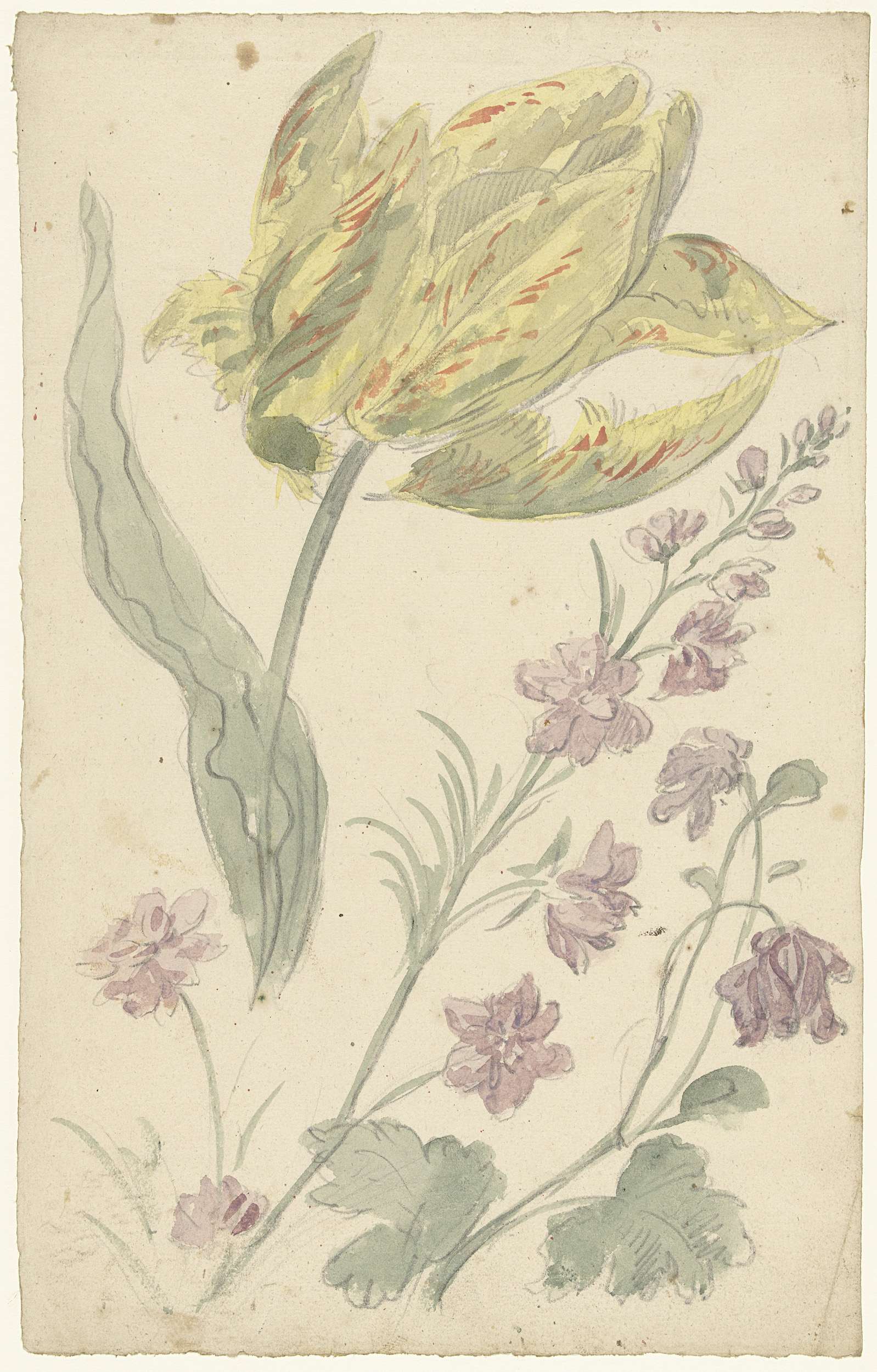 Studie van een gele tulp en een andere plant