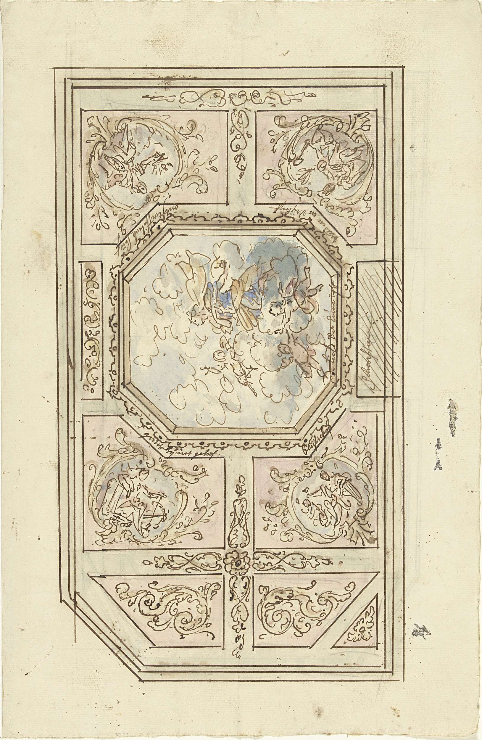 Ontwerp voor een plafondschildering met doorbroken g...