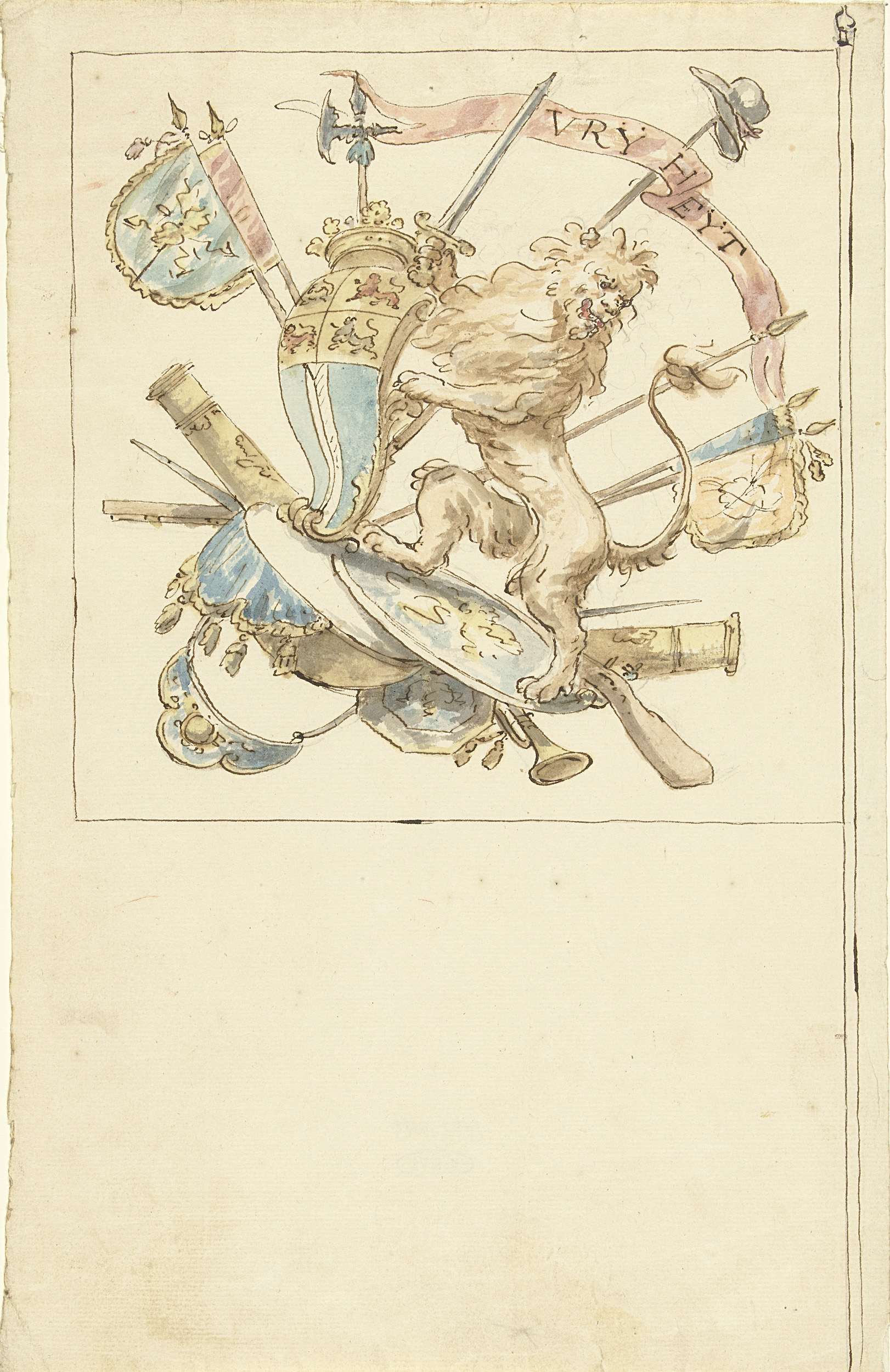 Ontwerp voor een banier met Mars, wapentuig en het w...