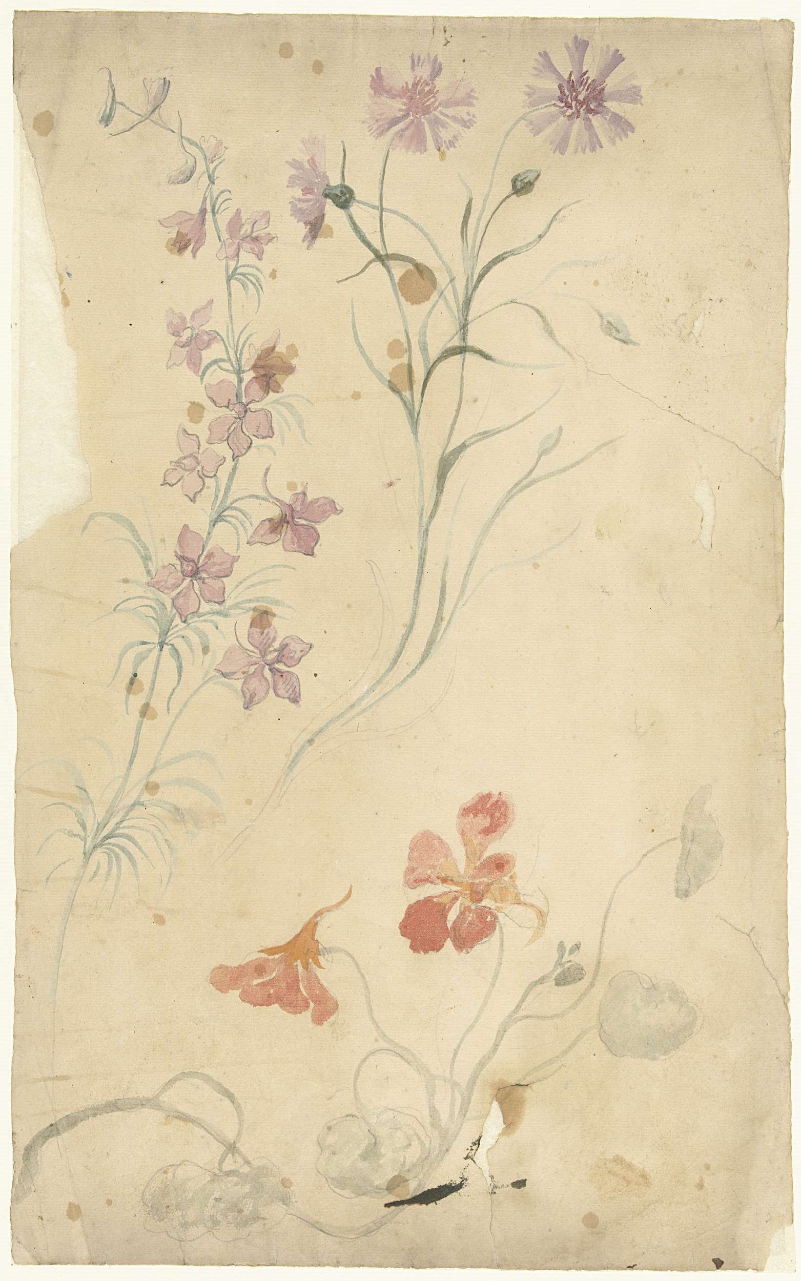 Studies van ridderspoor, anjer en Oostindische kers
