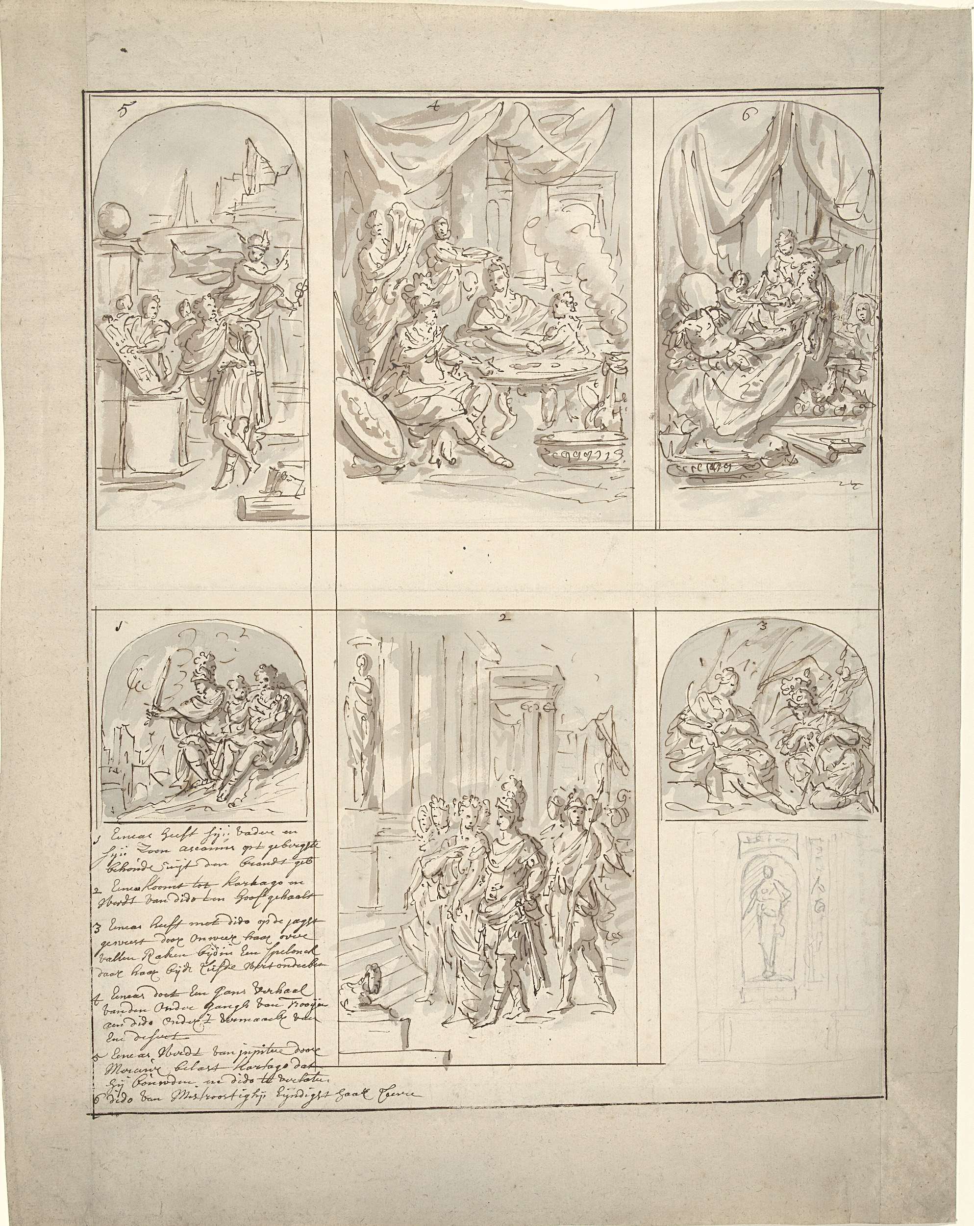 Ontwerp voor een kamerbeschildering met scènes uit h...