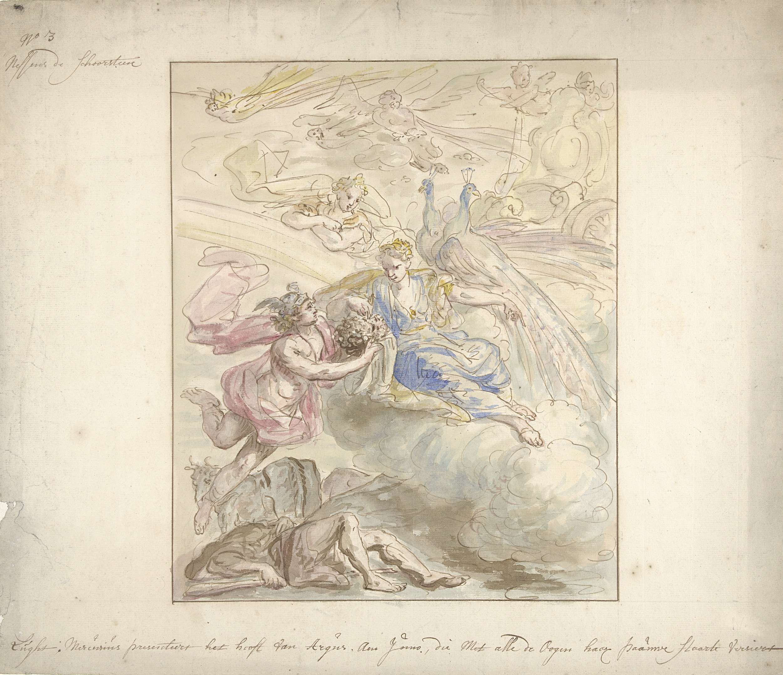 Ontwerp voor een plafondschildering met Jupiter en M...