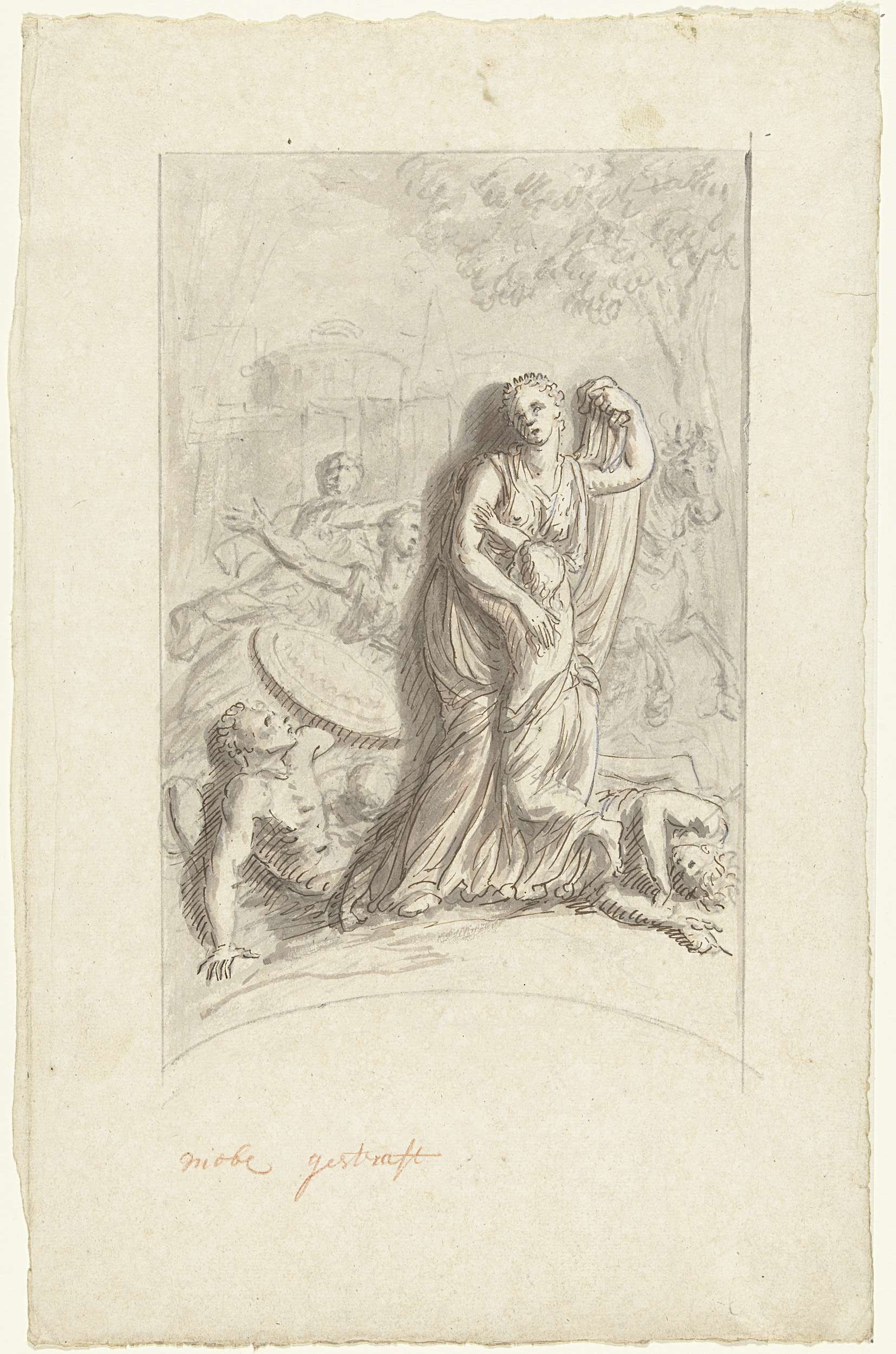 Ontwerp voor een zaalstuk: Dorinda getroffen door Si...