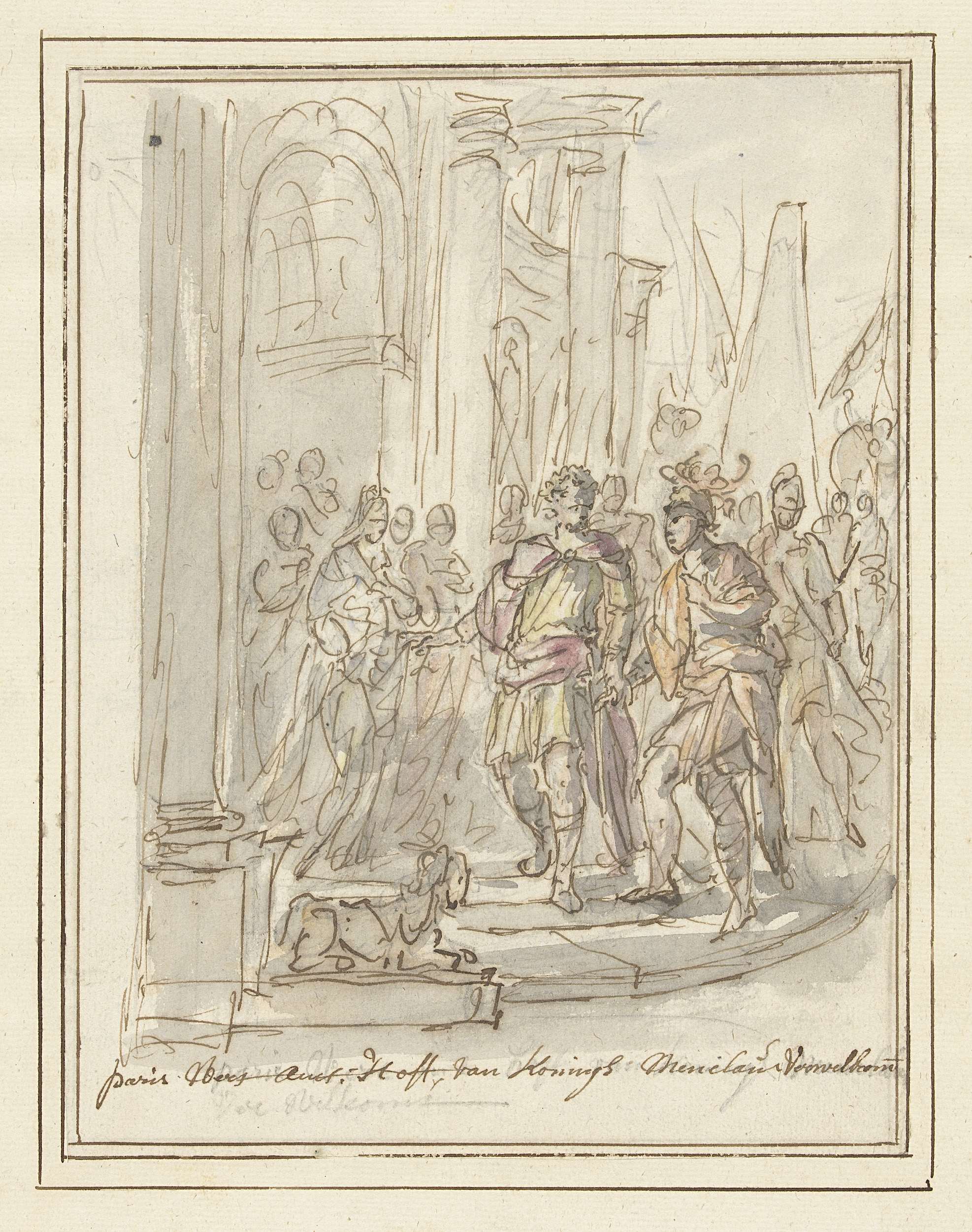 Paris wordt verwelkomd aan het hof van Menelaüs
