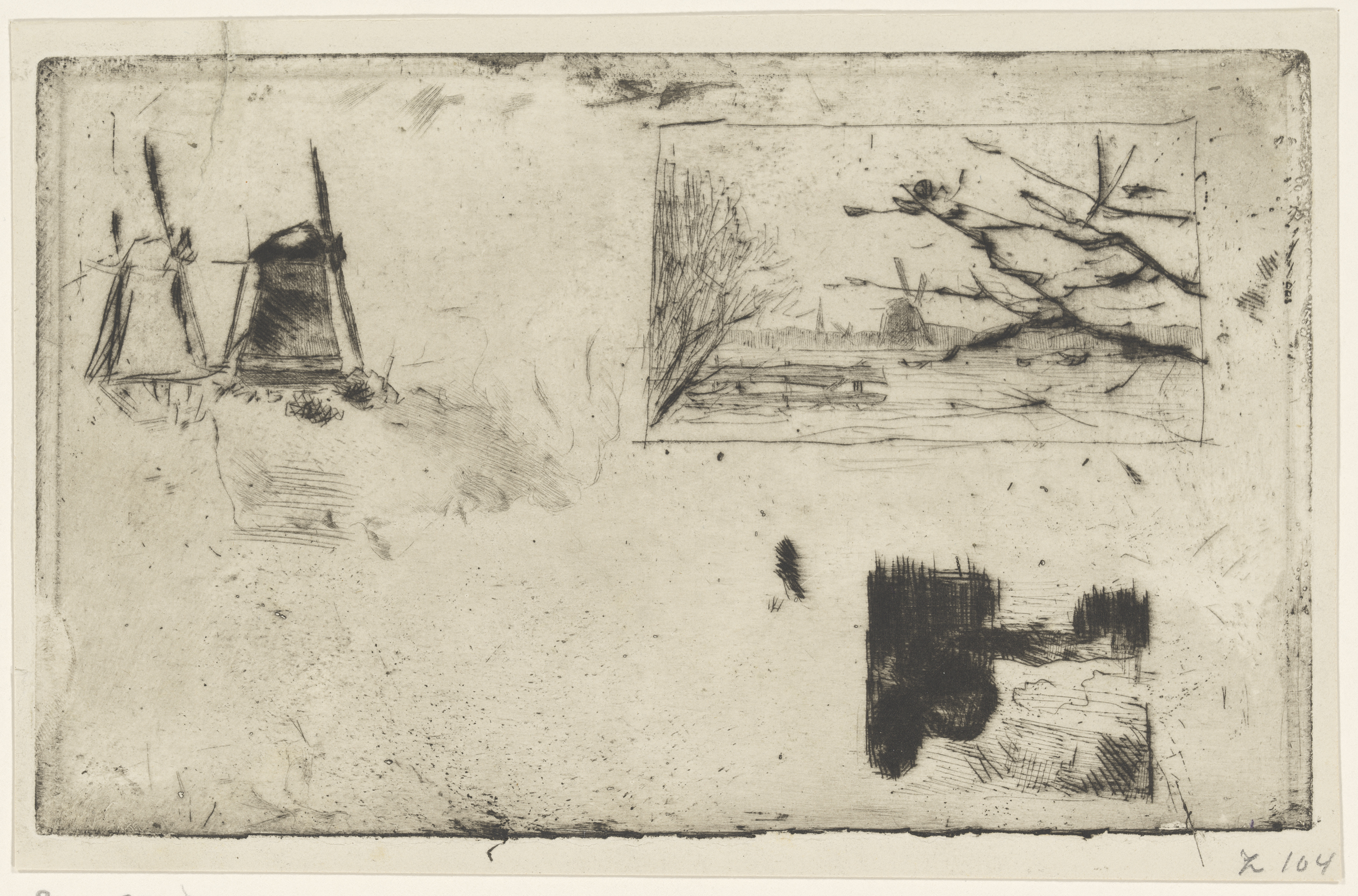 Twee landschappen, twee molens en het hoofd van een ...