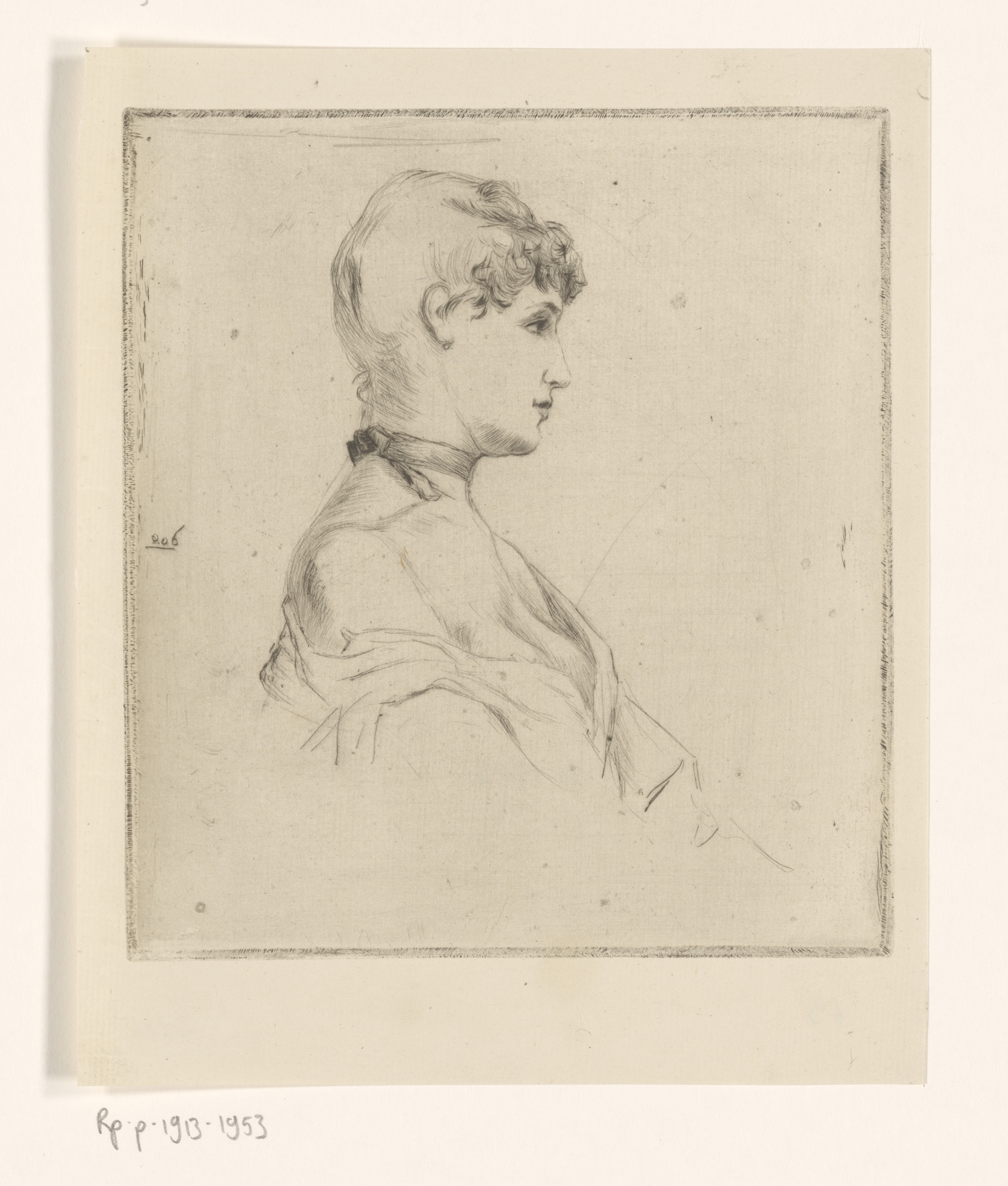 Portret van een jonge vrouw, en profil