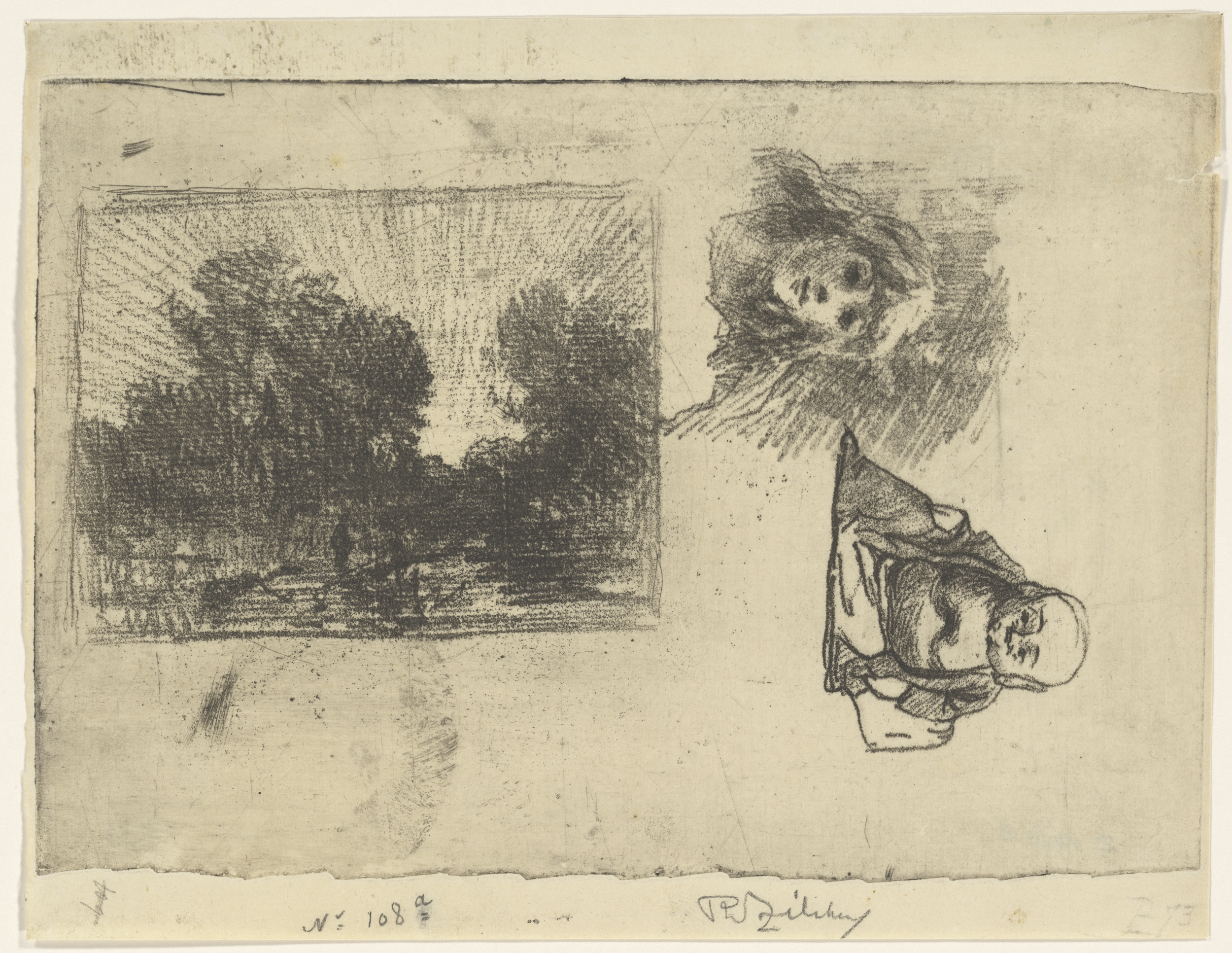 Landschap met bomen, hoofd van een jongen en Chinees...