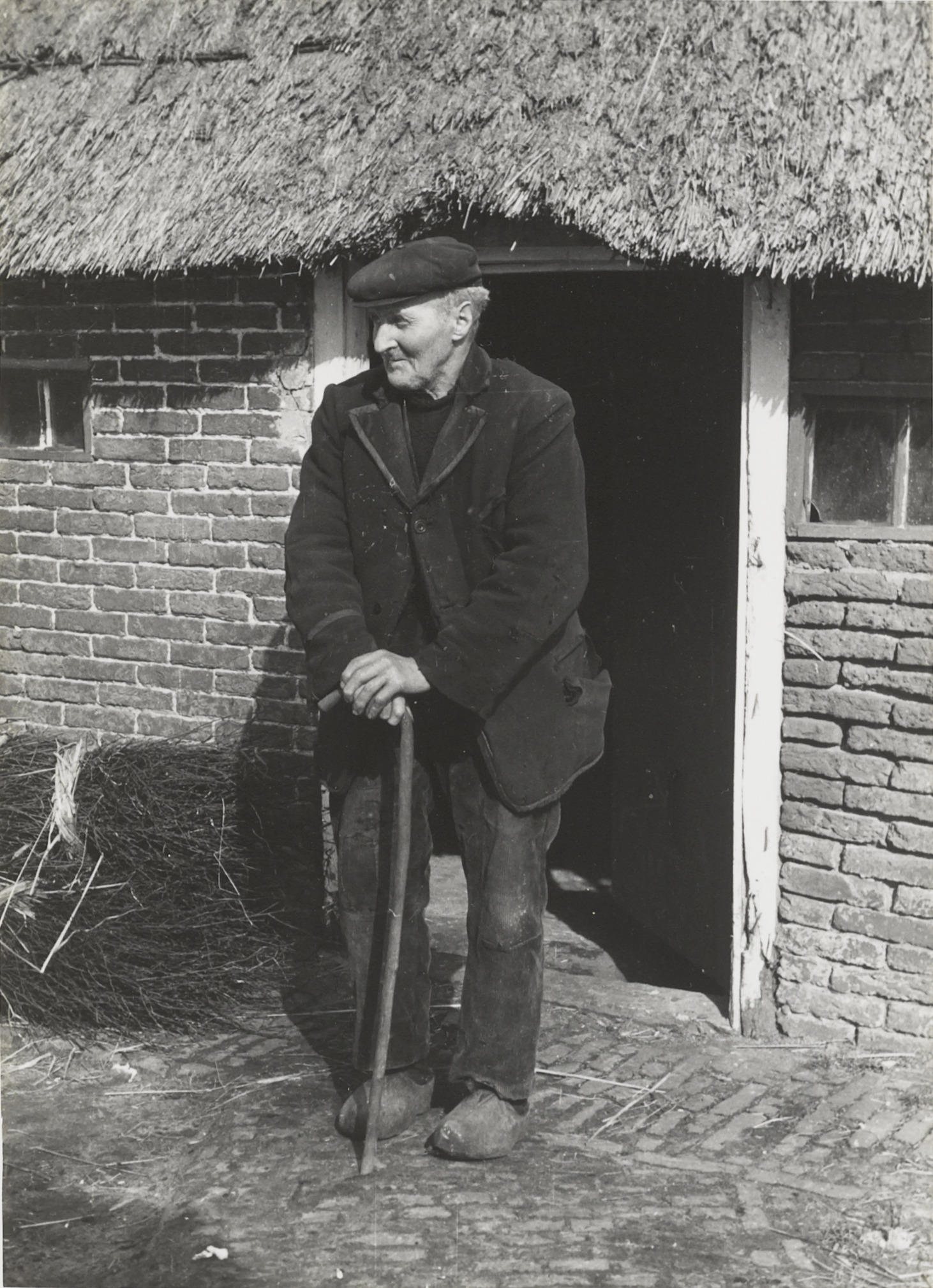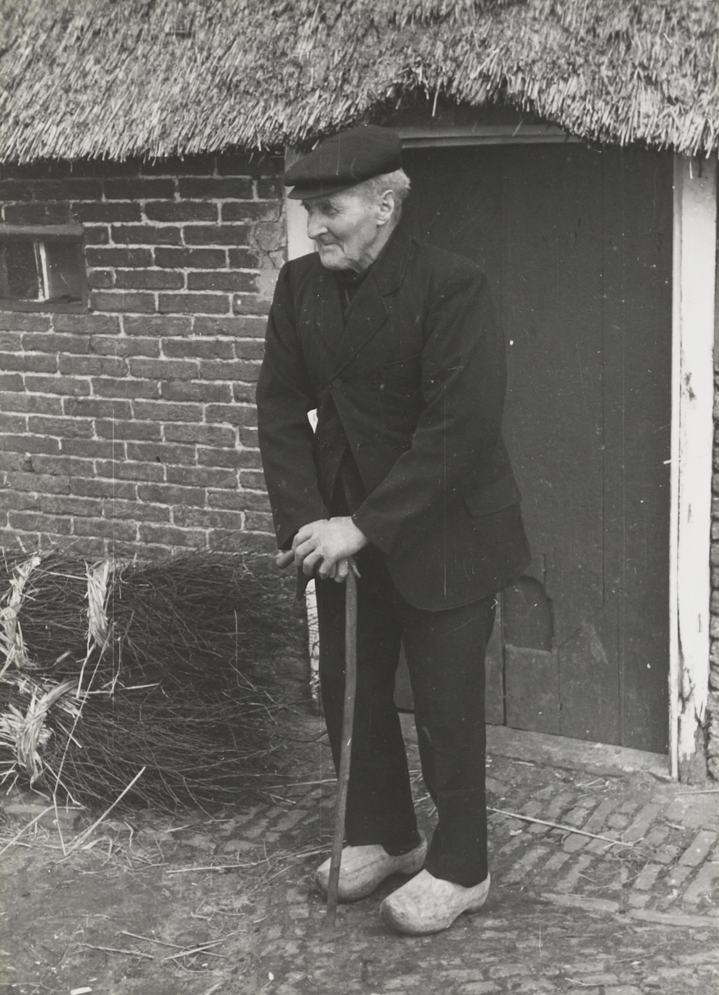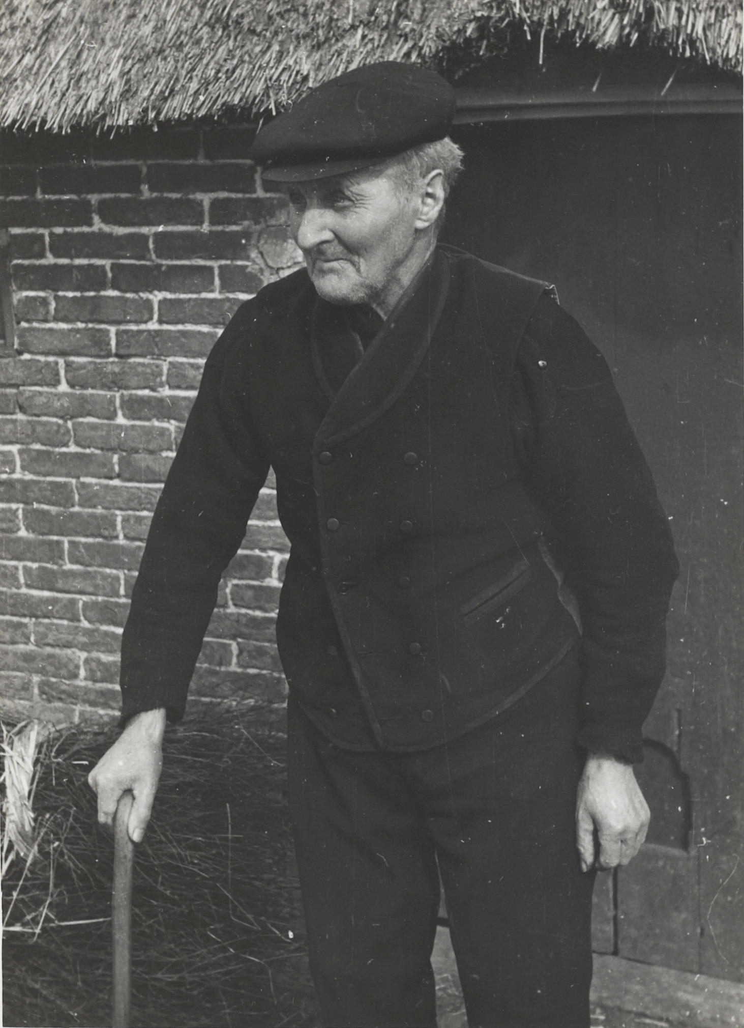Boer uit Orvelte in zijn werkpak, 1944 (zwart-wit foto)