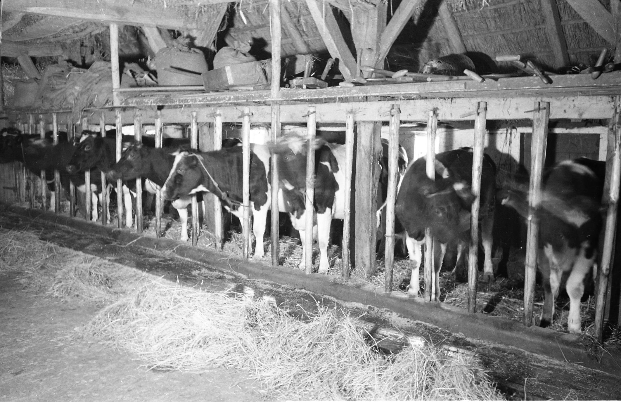 Stal met koeien, Orvelte, 1944 (zwart-wit negatief)