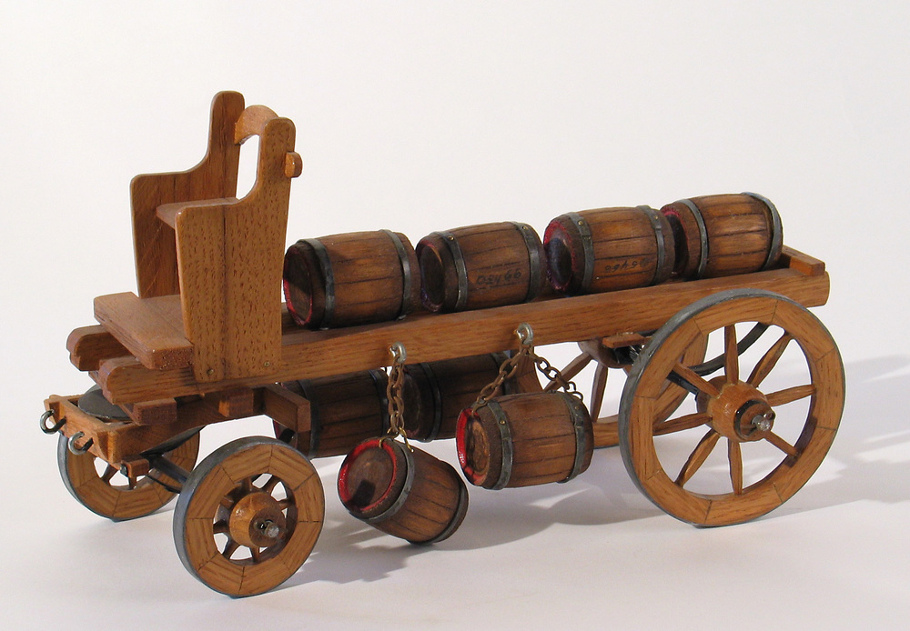 Bierkar van hout, miniatuur, vervaardigd door Hein L...