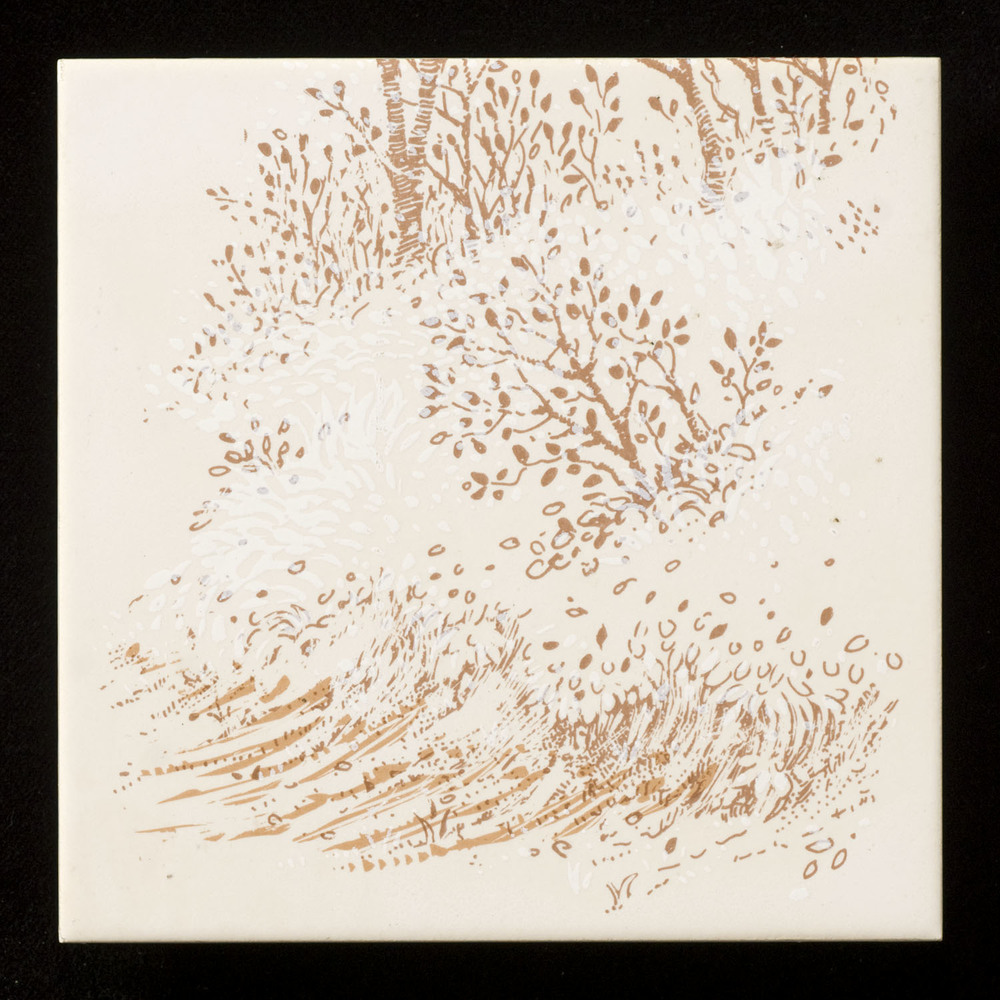 Tegel in druktechniek, met voorstelling: boomstruike...