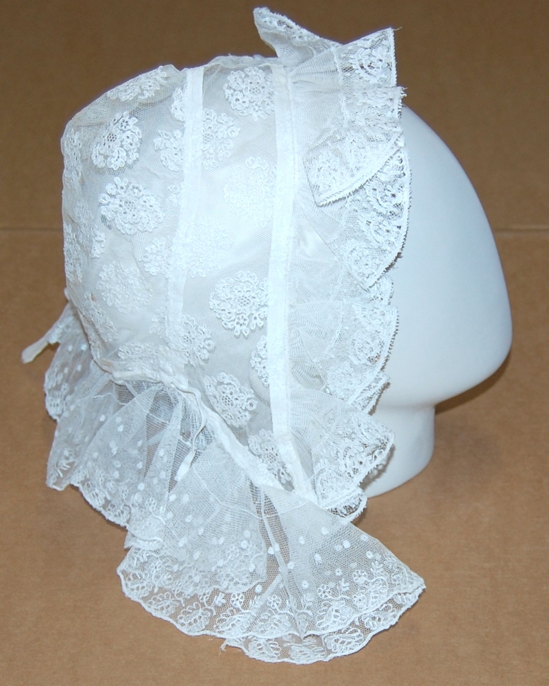 witte handgemaakte muts van katoen-tule 1875-1900