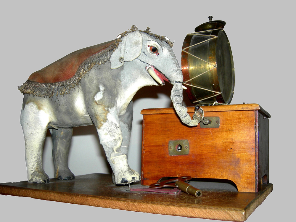 Olifant met cilinderspeelwerk uit ca. 1920, ontwerp ...