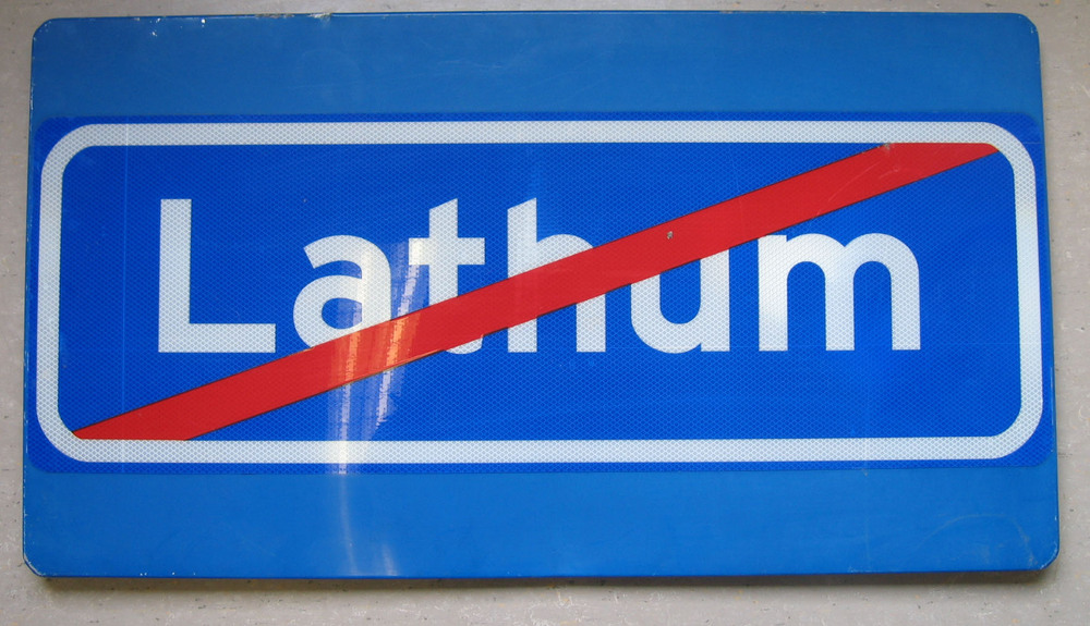 Verkeersbord van metaal einde bebouwde kom Lathum ca...