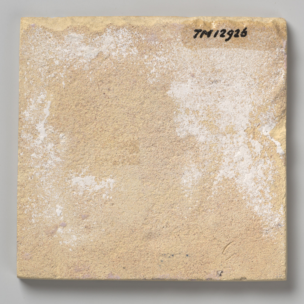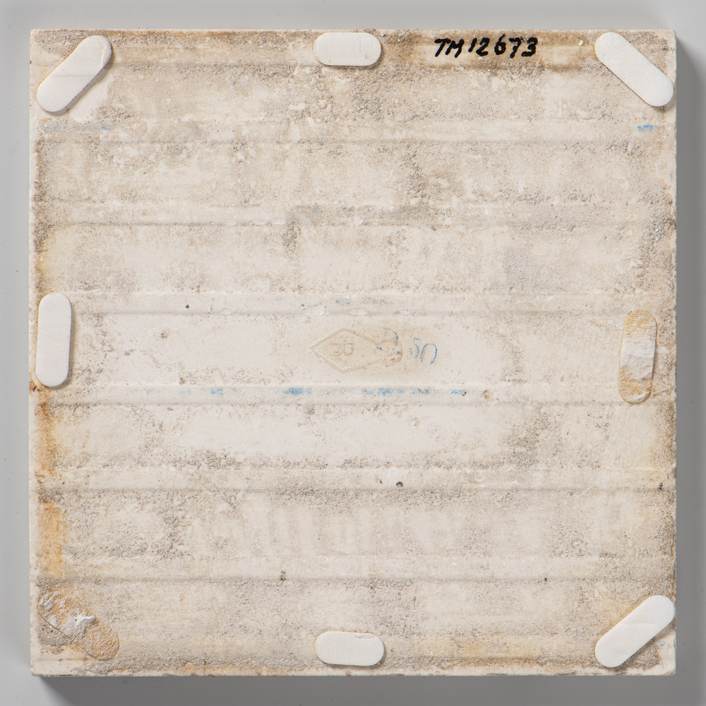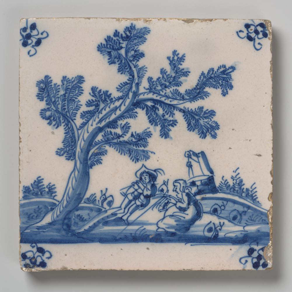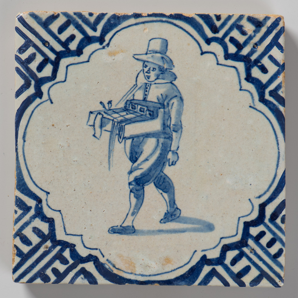 tegel van aardewerk met tinglazuur, voorstellende: m...
