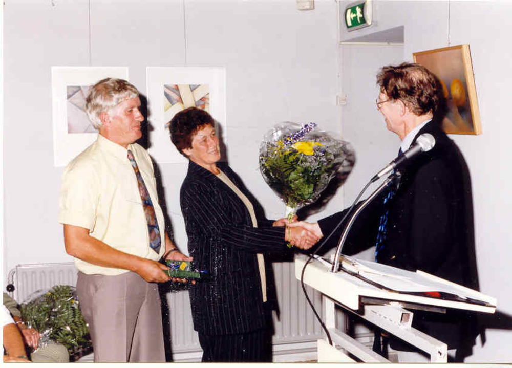 Burgemeester Oldenhof schudt de hand met één van de ...