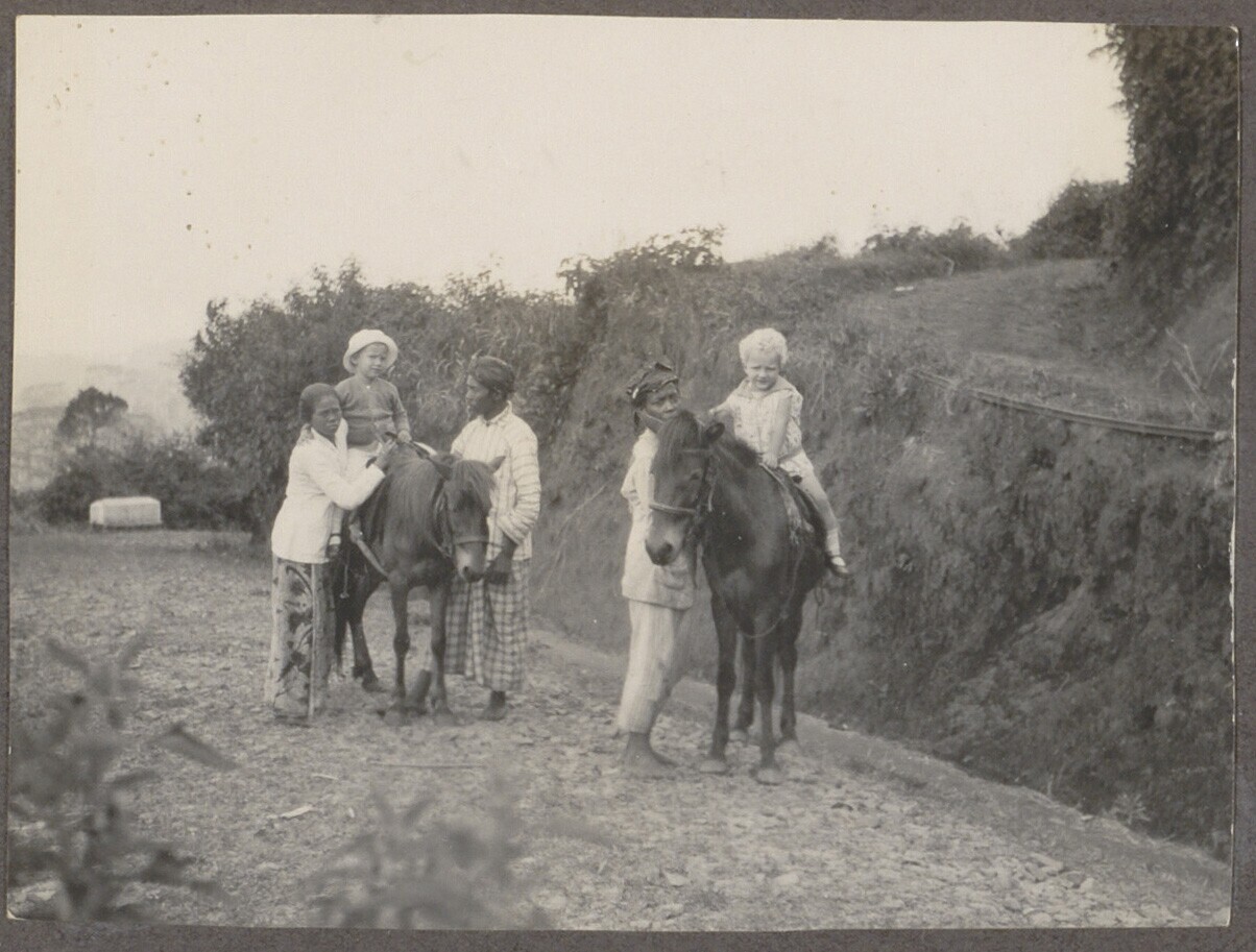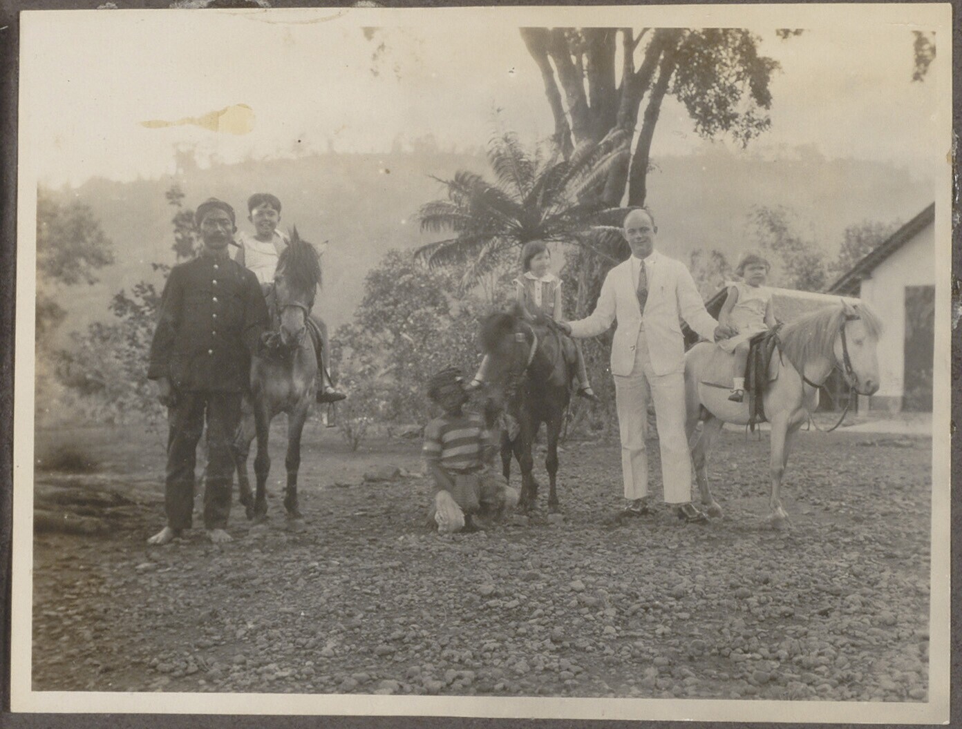 Wim v.d. Arend met zijn dochters te paard, Sukapura