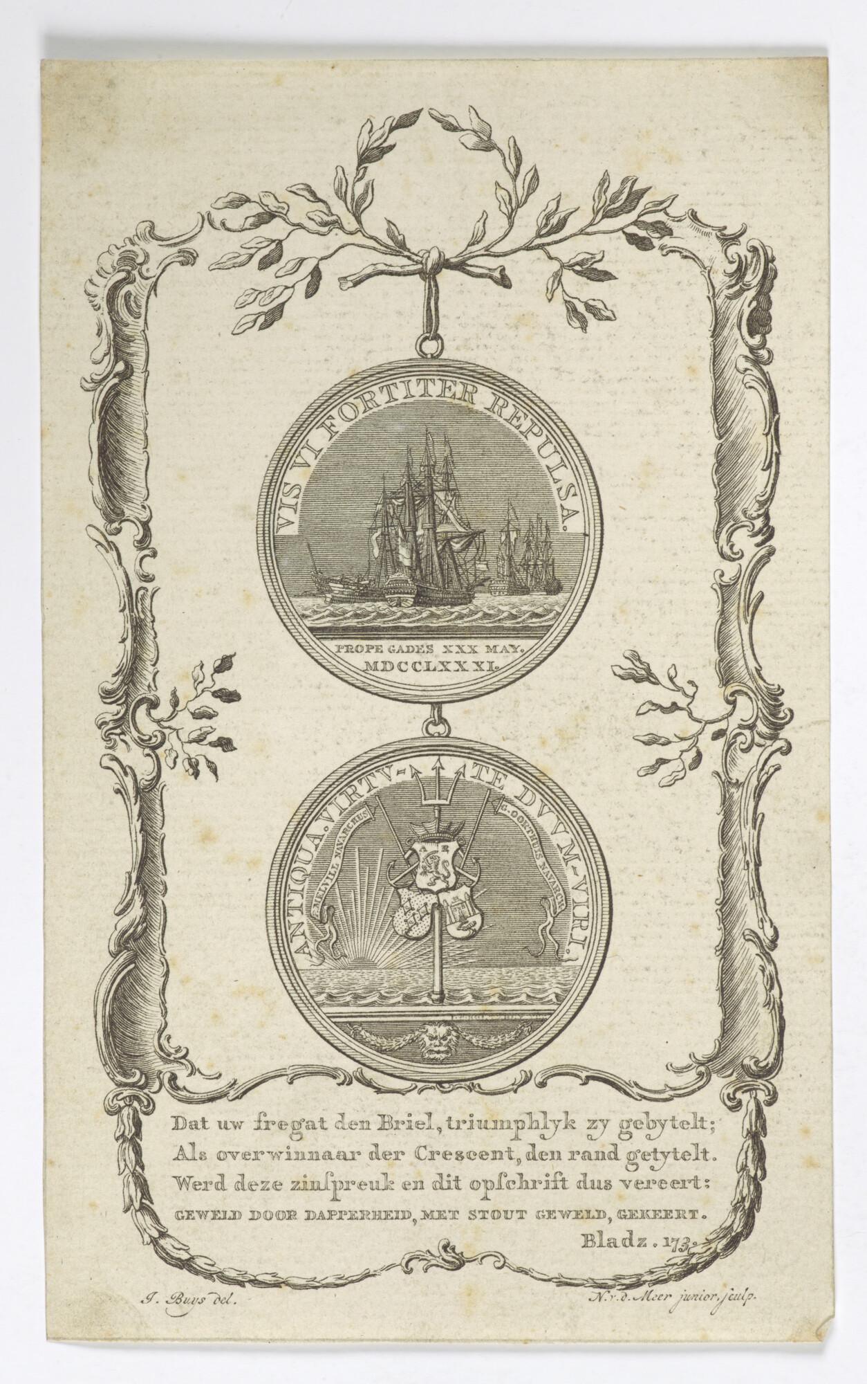 Prent met afbeeldingen van een penning ter herinneri...