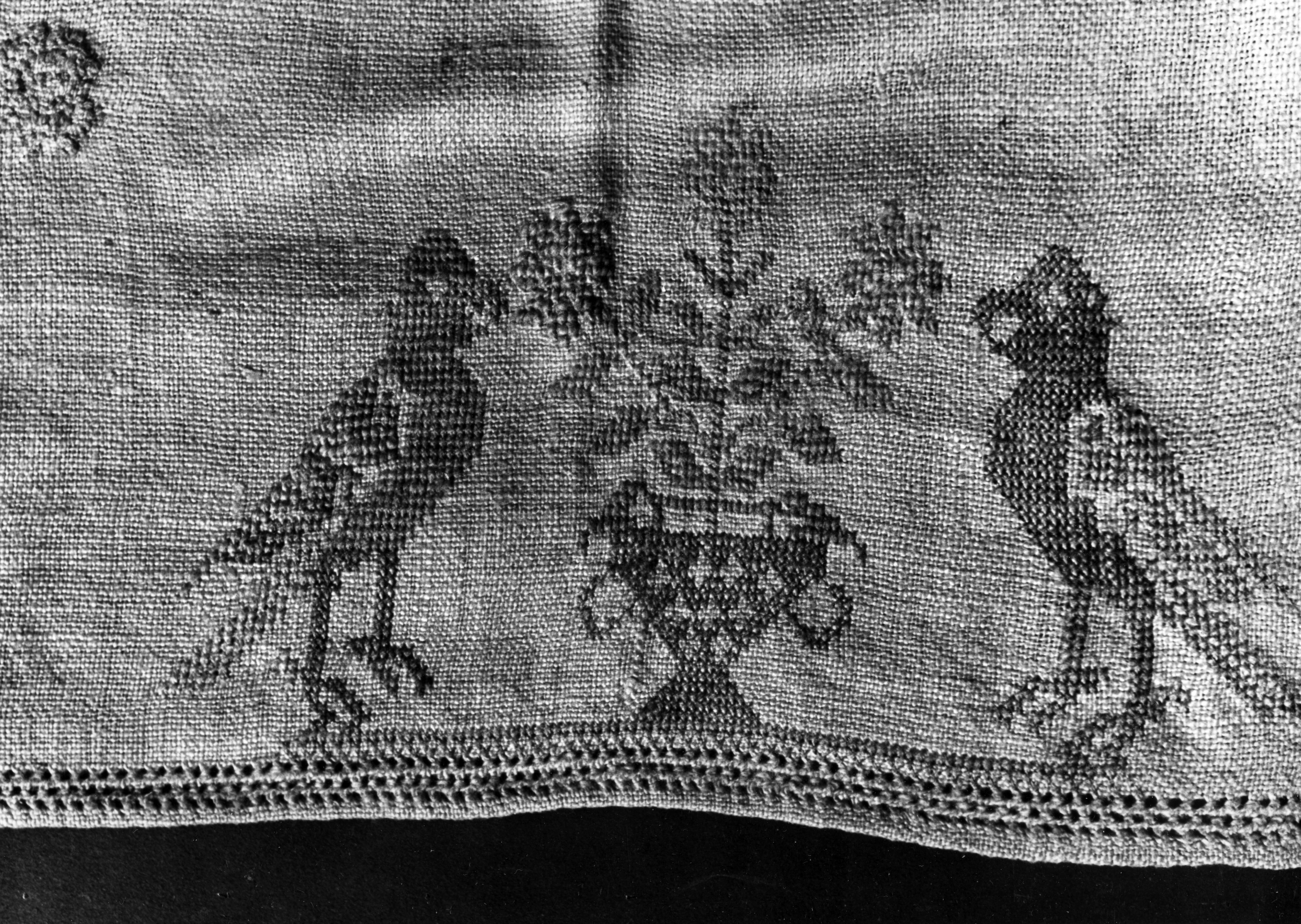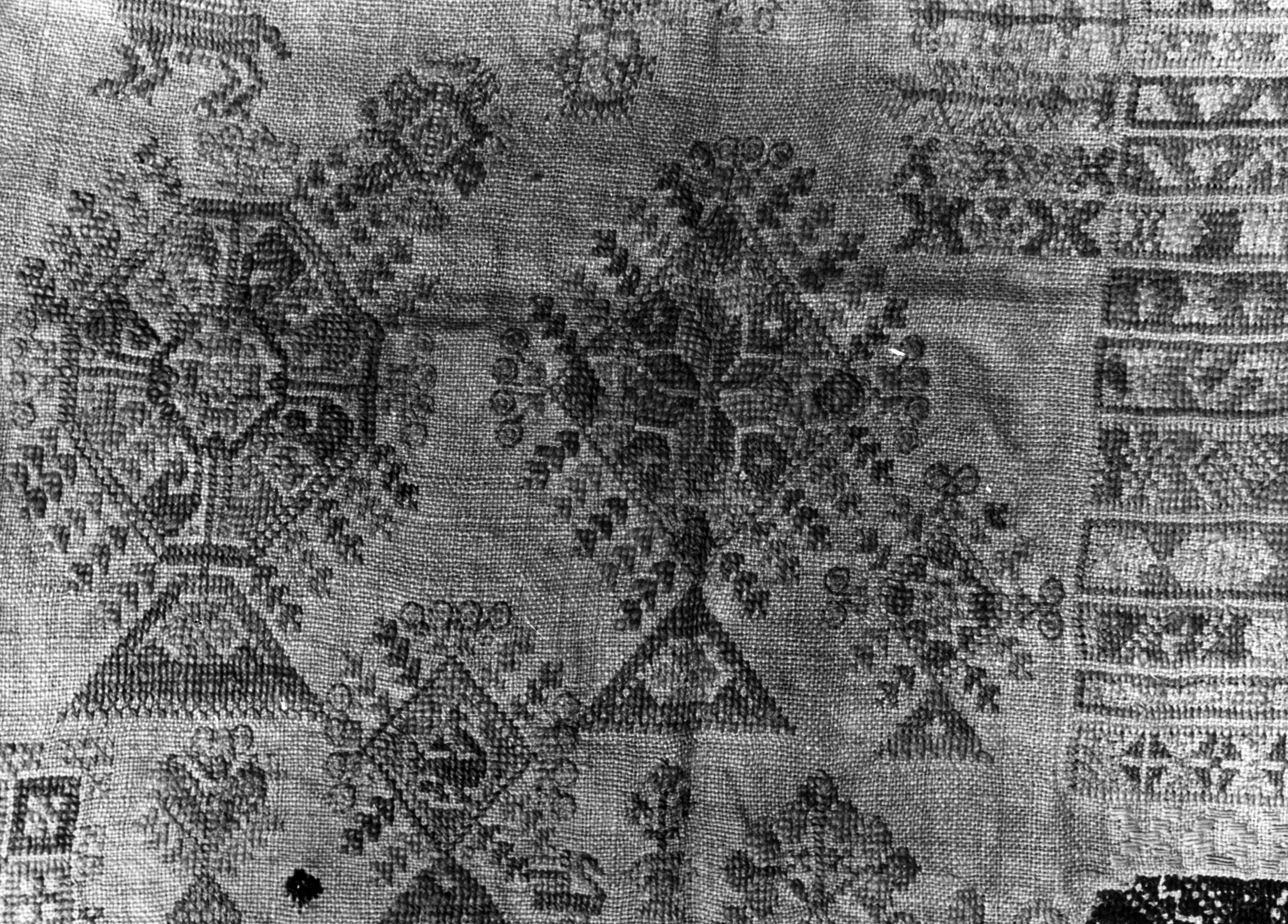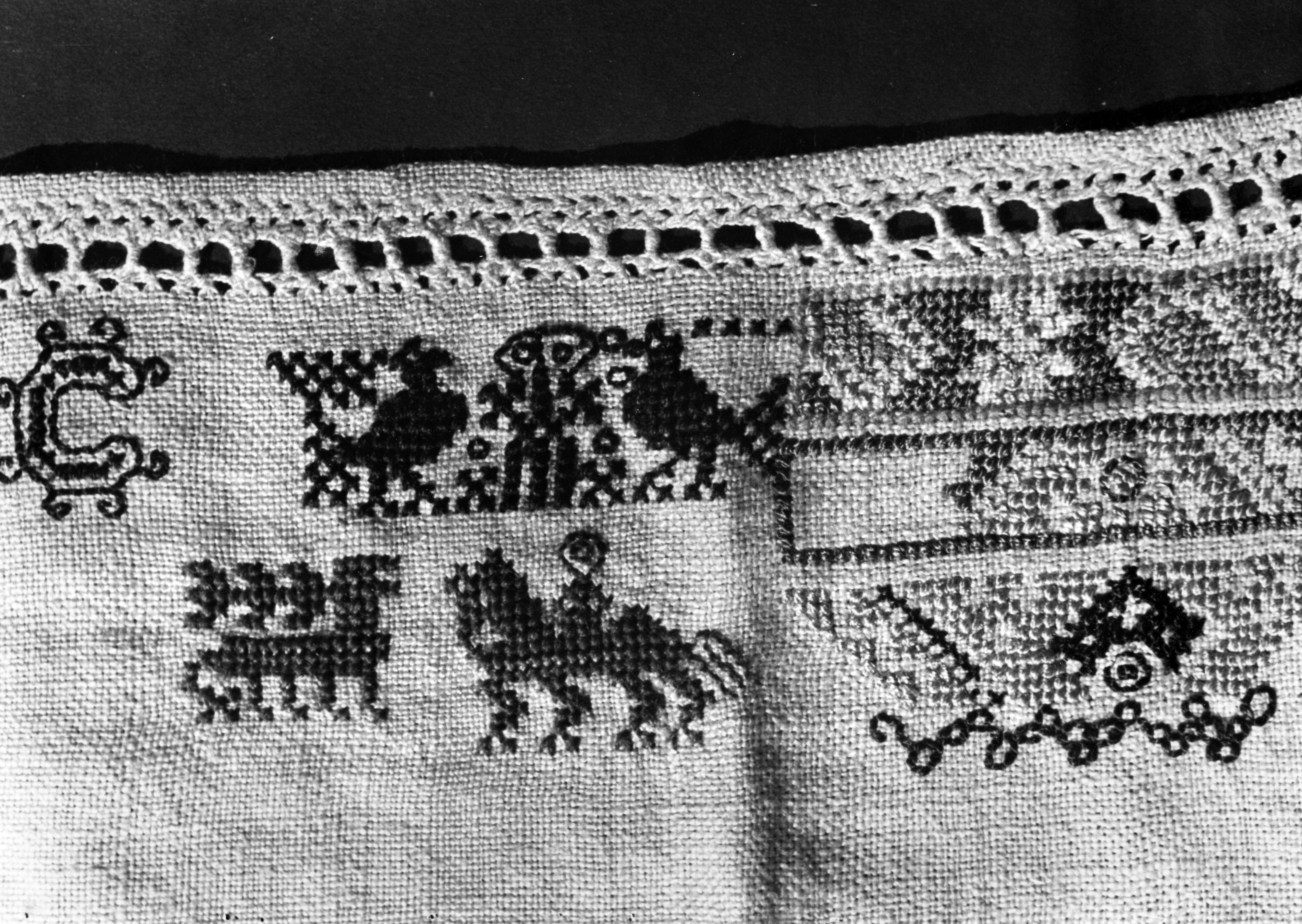 Detail van een merklap, Marken, 1943 (zwart-wit foto)