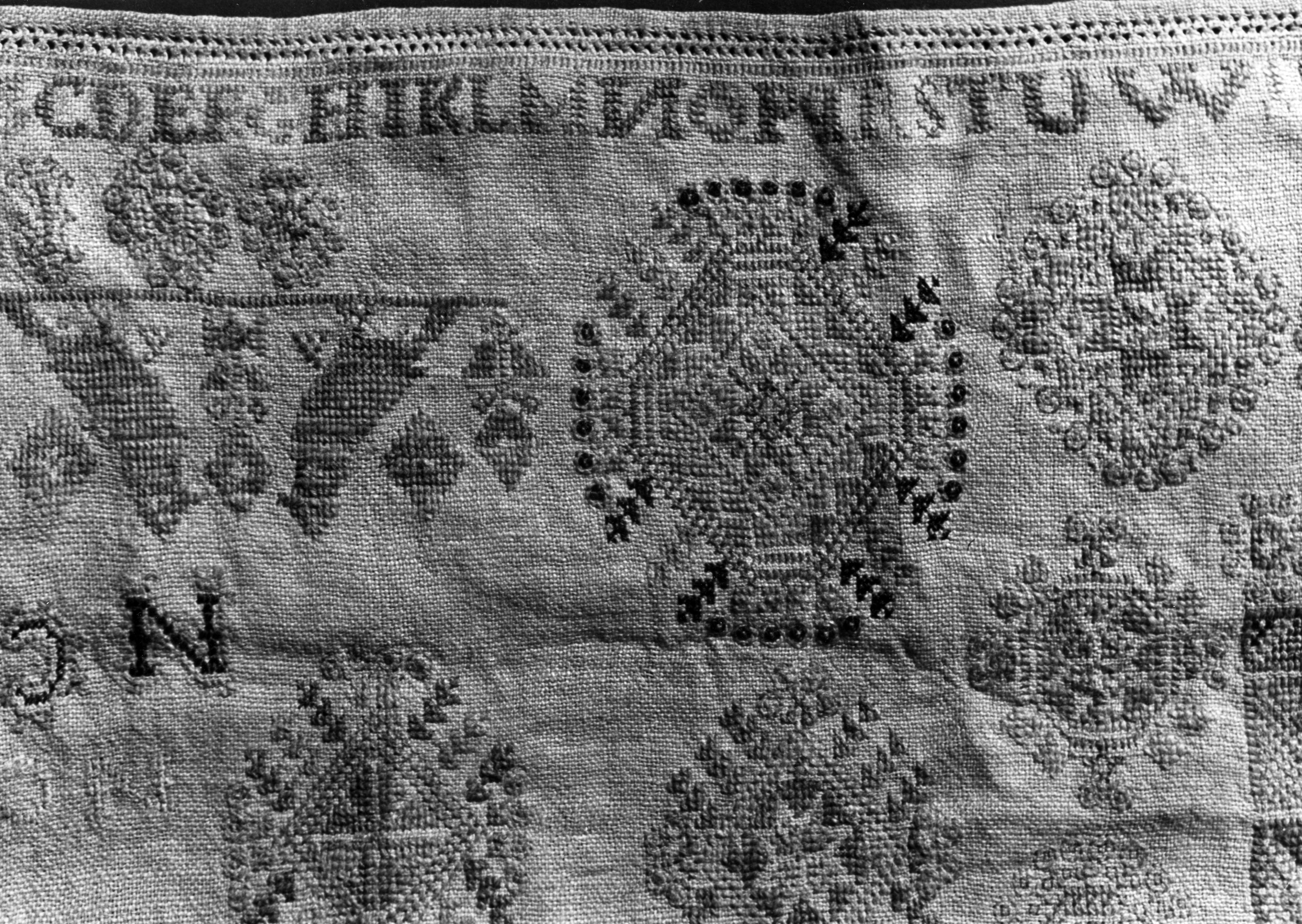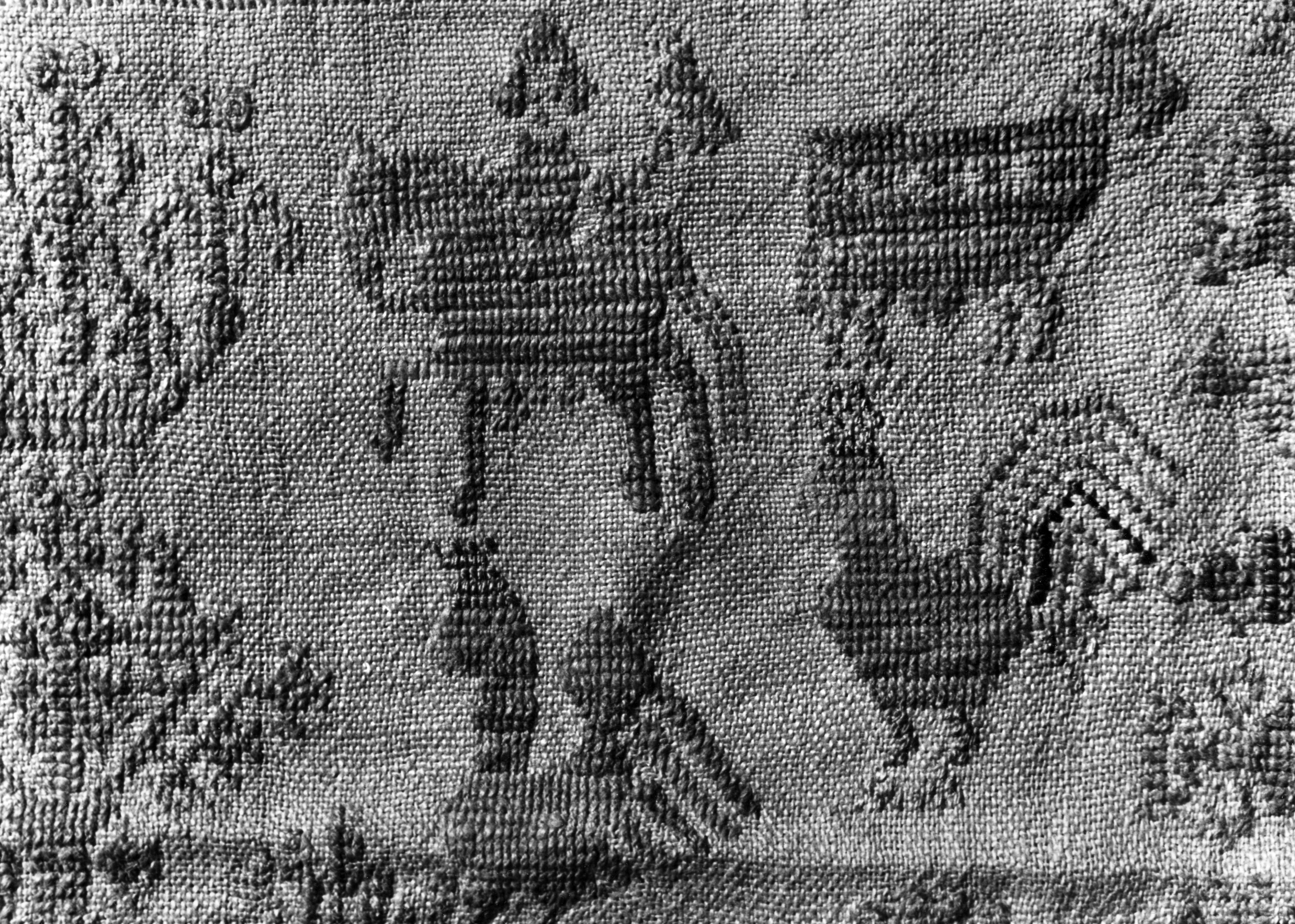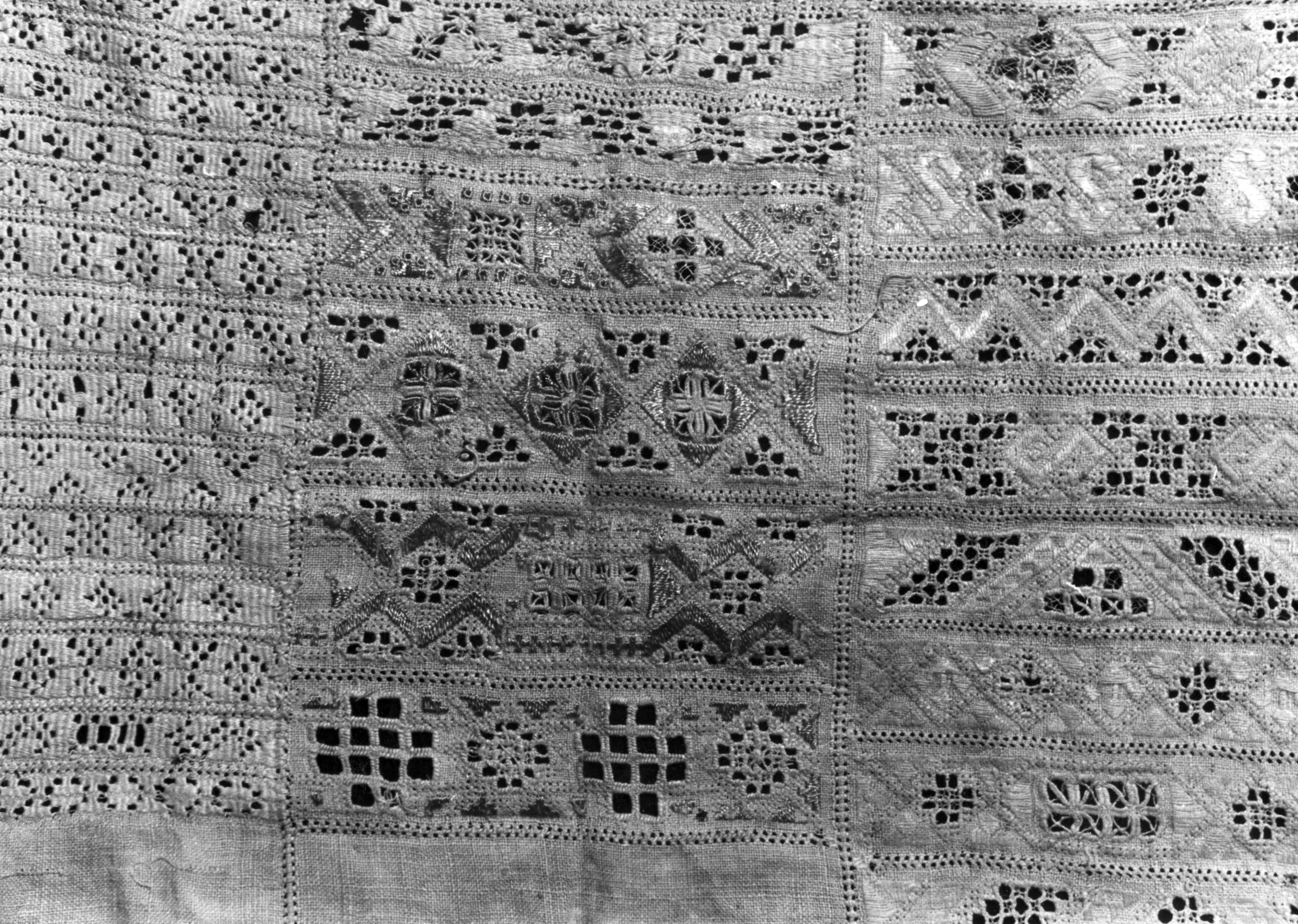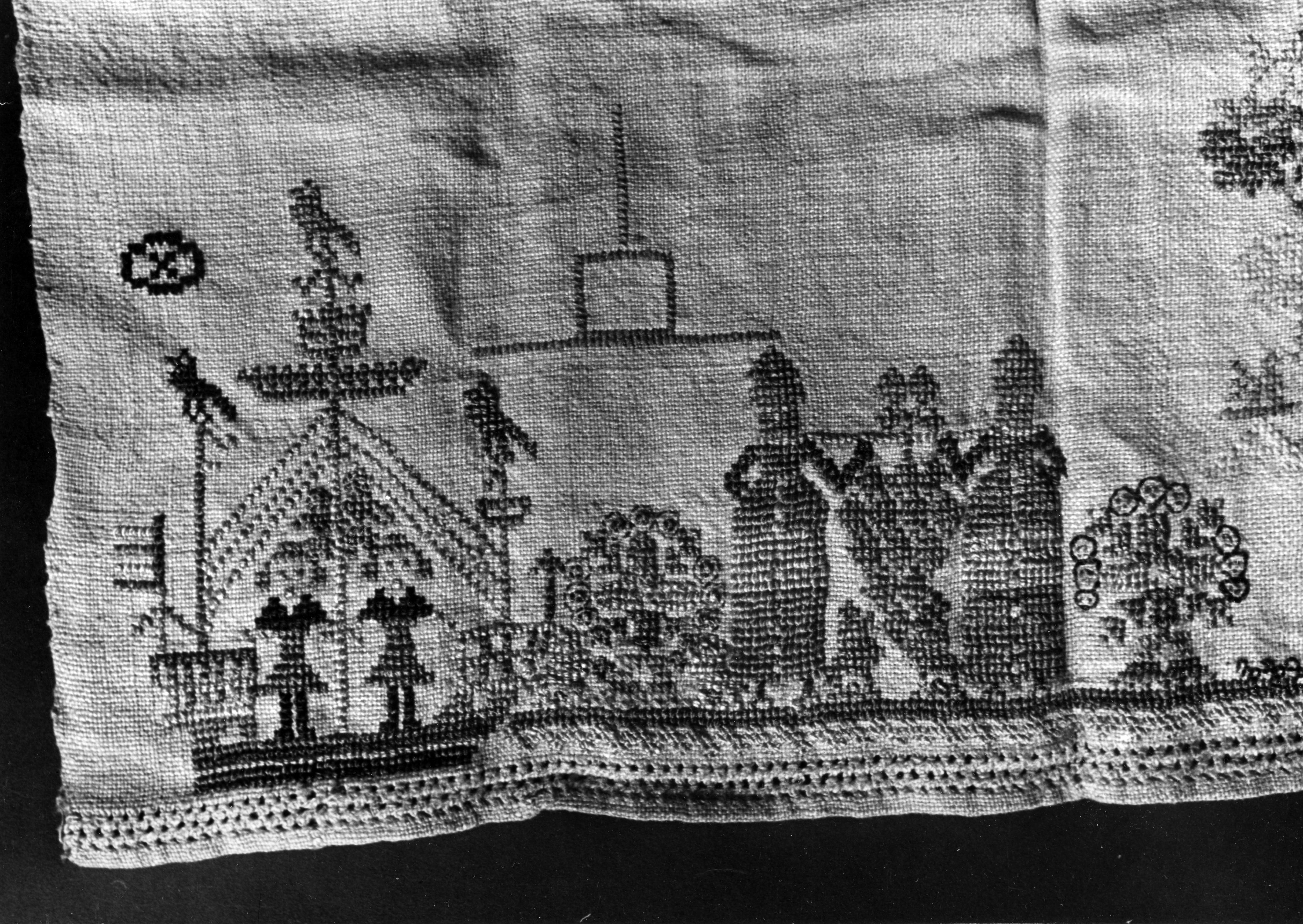 Detail van een merklap, Marken, 1943 (zwart-wit foto)