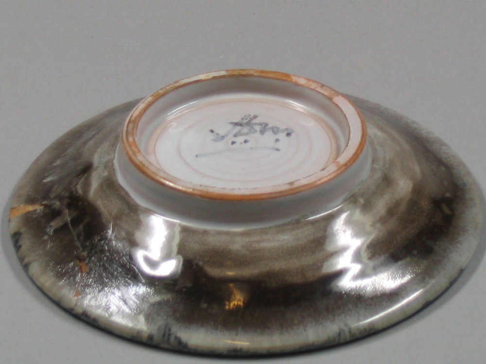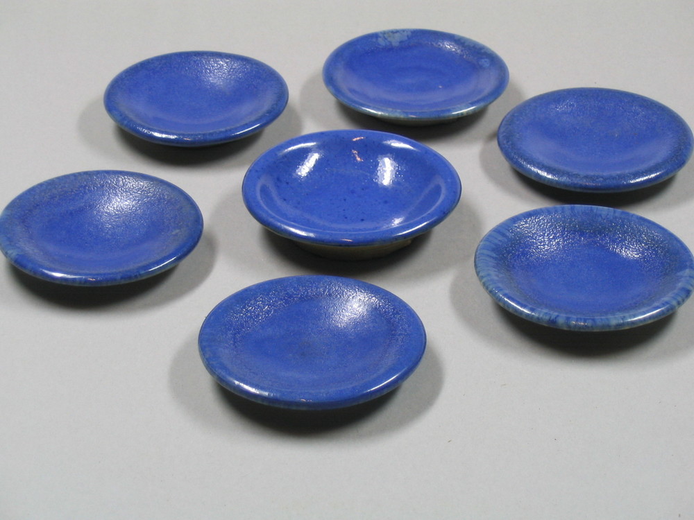 bord van keramiek, lichtblauw van kleur, met witte, ...