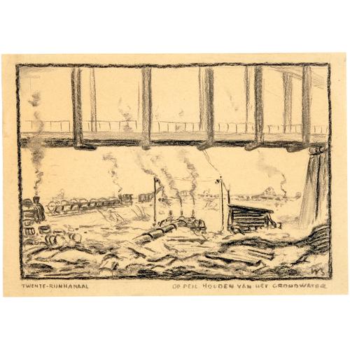 Krijttekening: Werkzaamheden aan het Twente-Rijnkana...