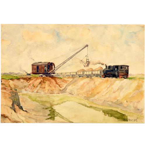 Aquarel: Werkzaamheden aan het Twente-Rijnkanaal, 1936