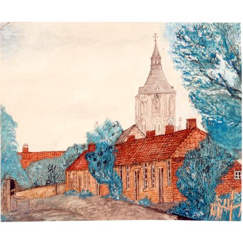 Aquarel: Armengesticht met op de achtergrond Plechel...