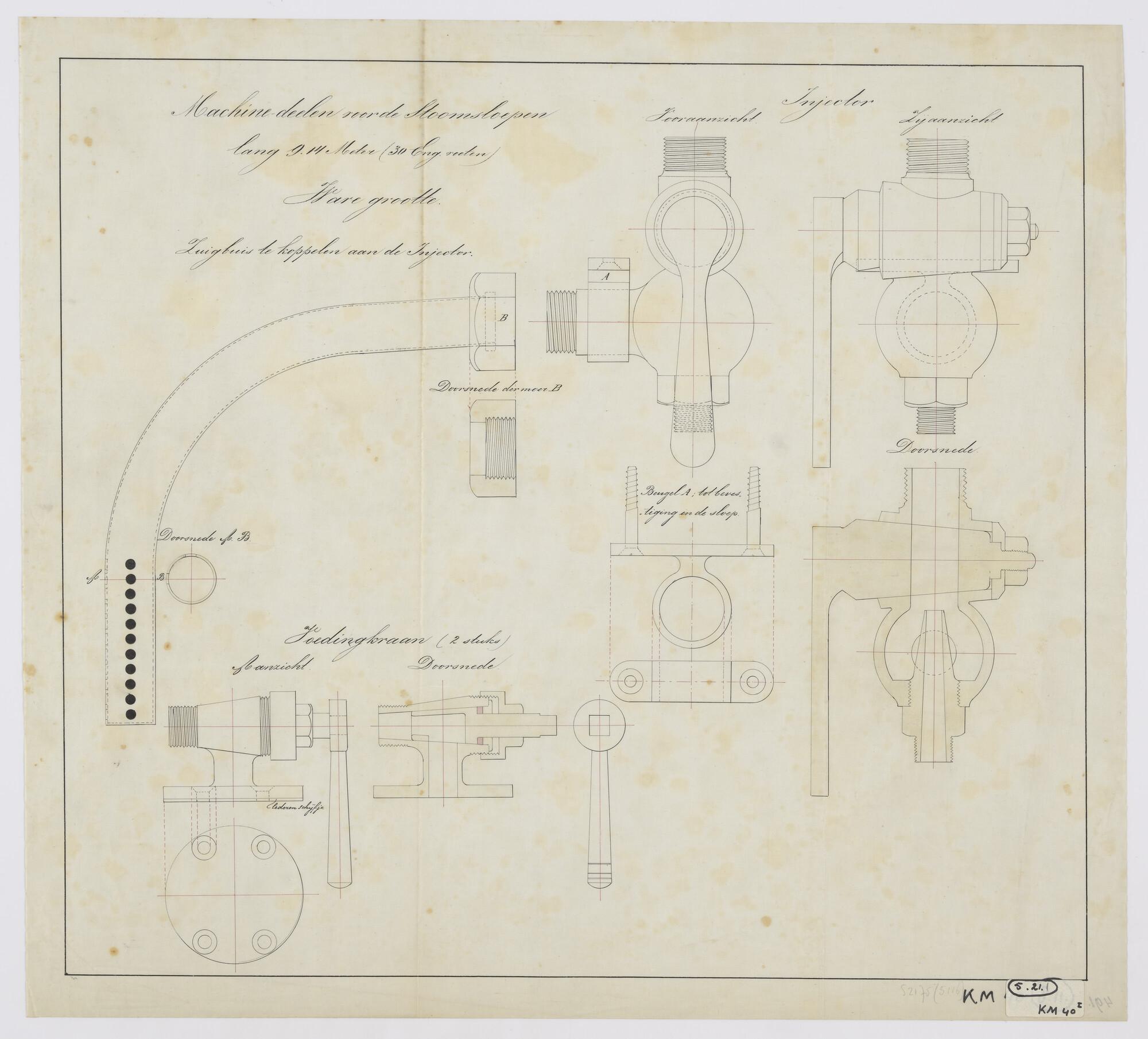 Langs- en dwarsdoorsneden van de stoomketel van het ...