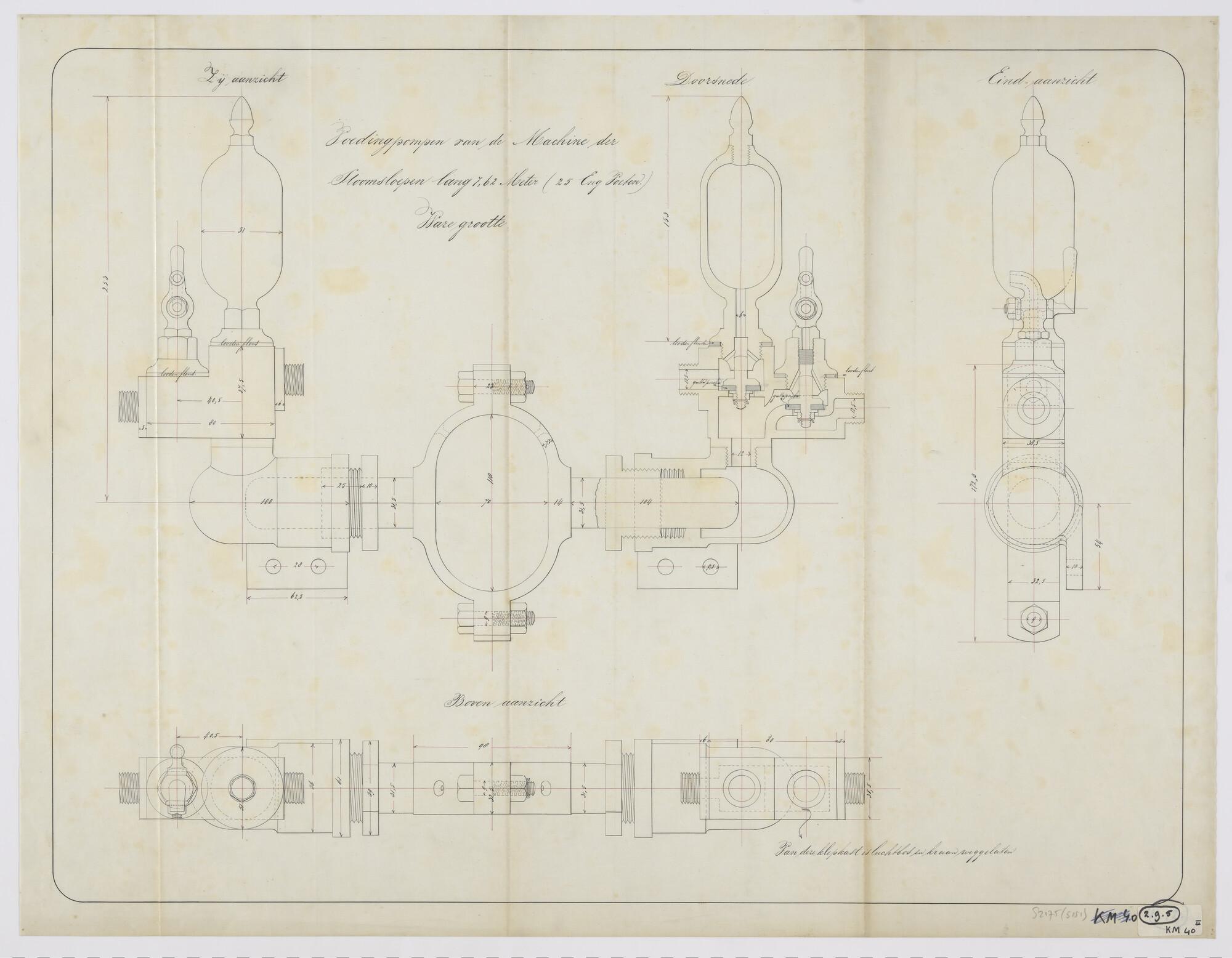 Aanzichten en doorsneden van de voedingpompen van de...