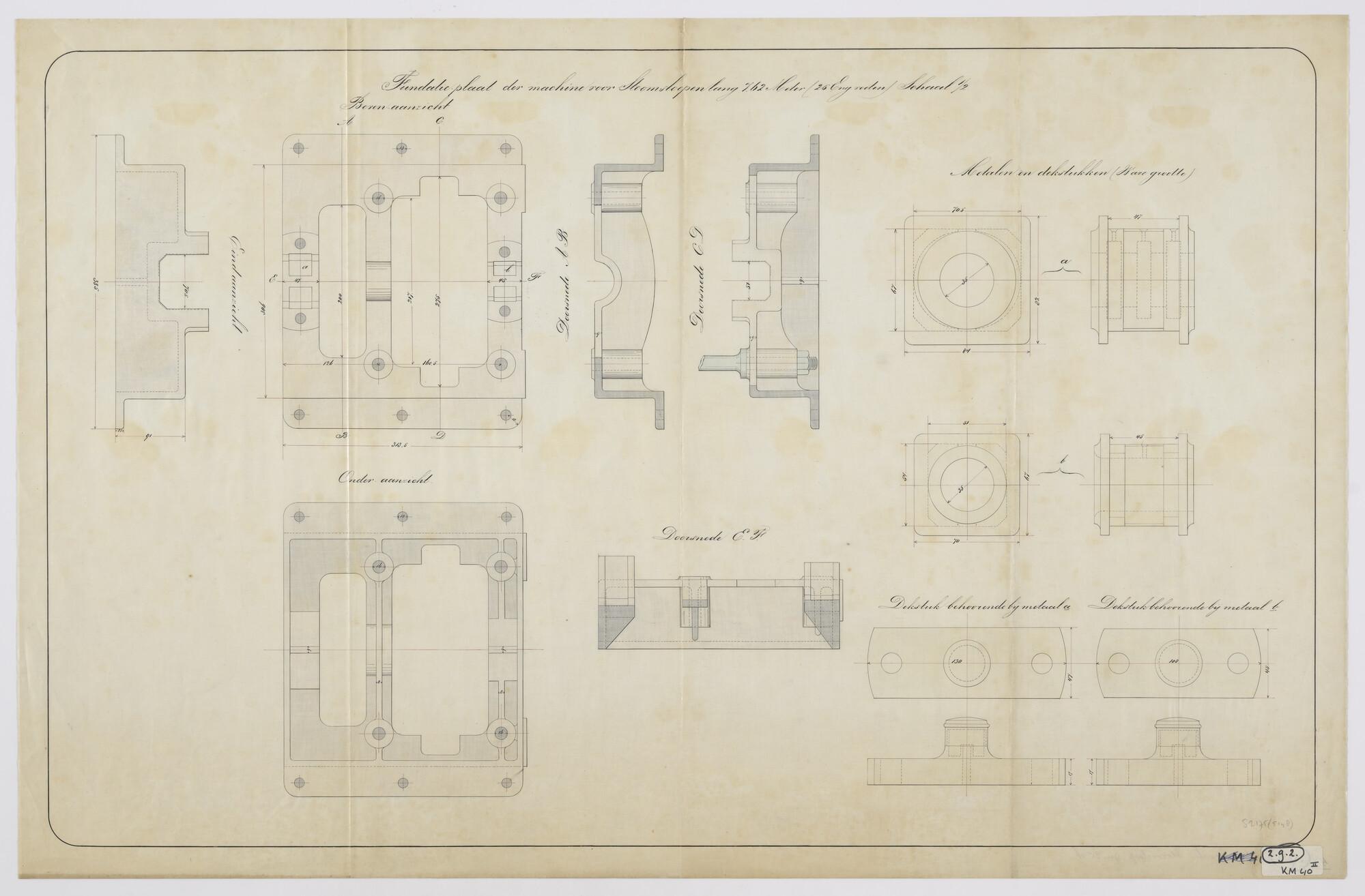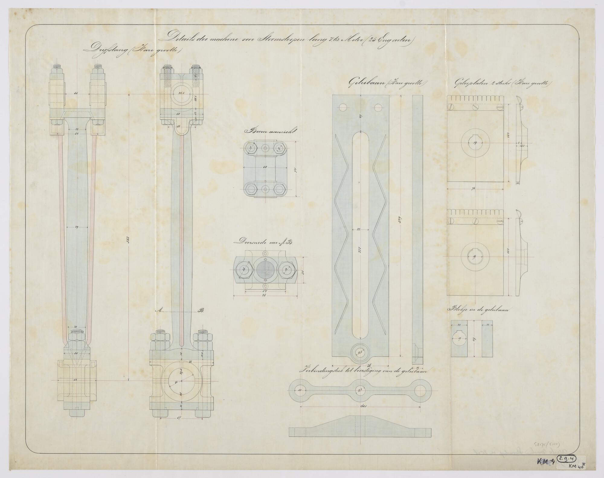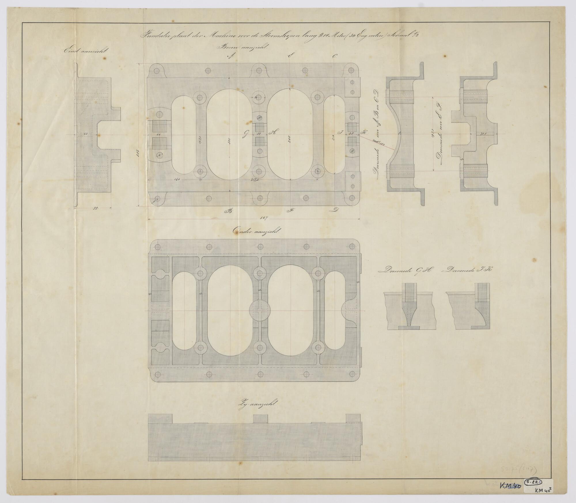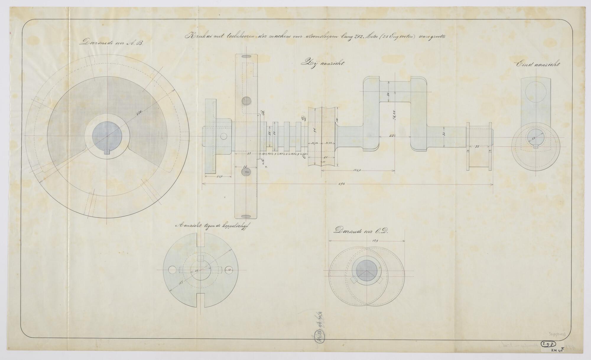 Aanzichten en doorsneden van de krukas van de stoomm...