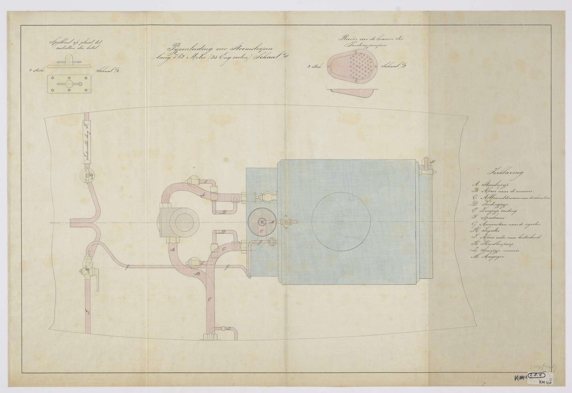 Aanzicht en doorsnede van het reservoir van de stoom...