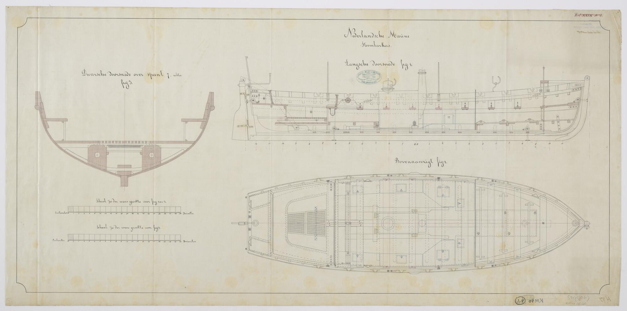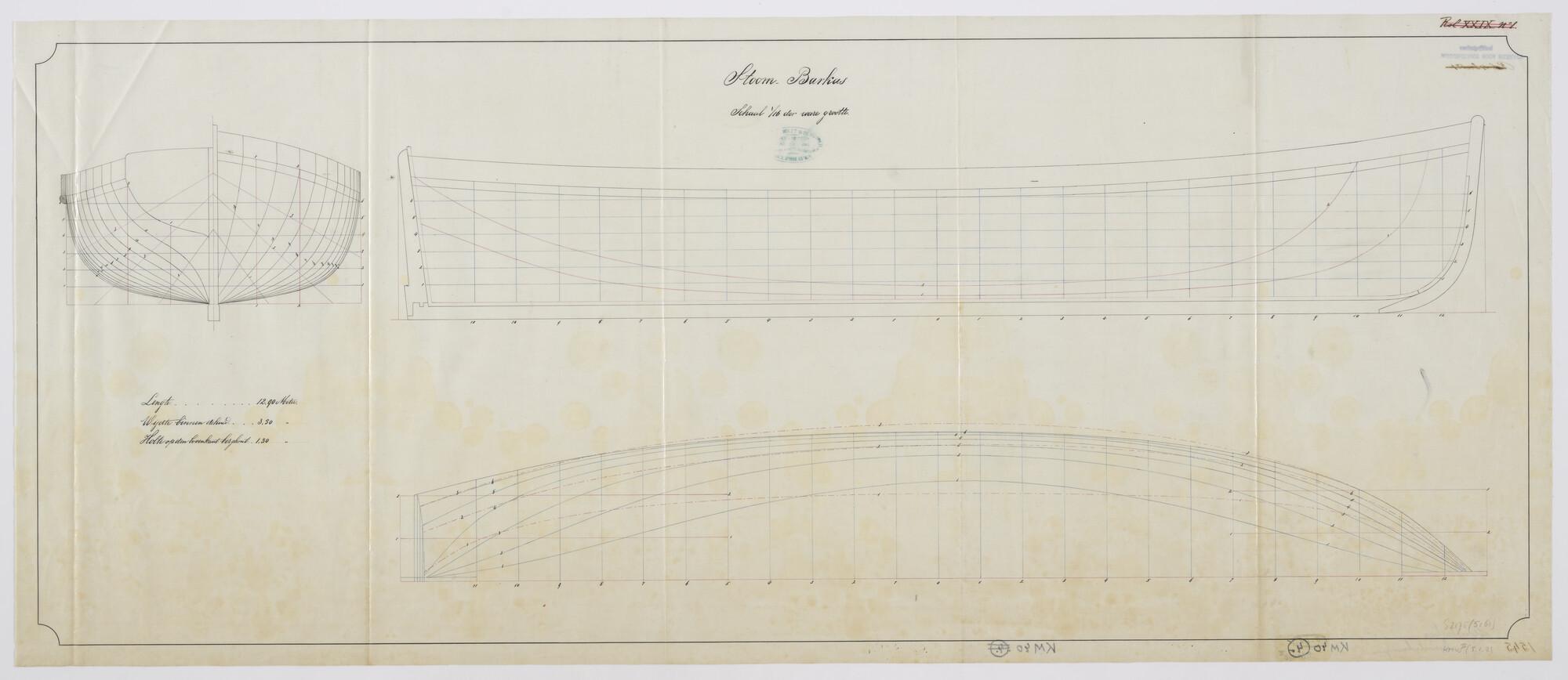 Lijnenplan, spantenraam van een stoombarkas [1879] l...