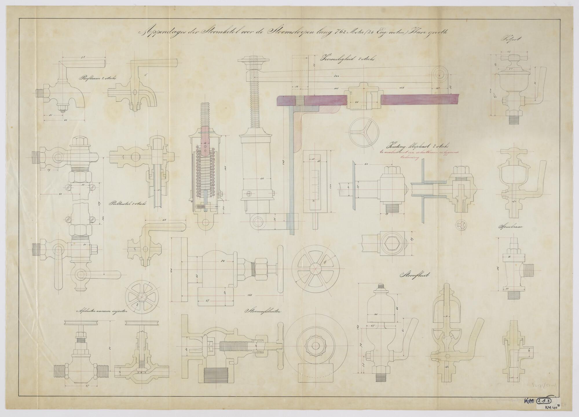 Doorsneden en aanzichten van de cilinder met toebeho...