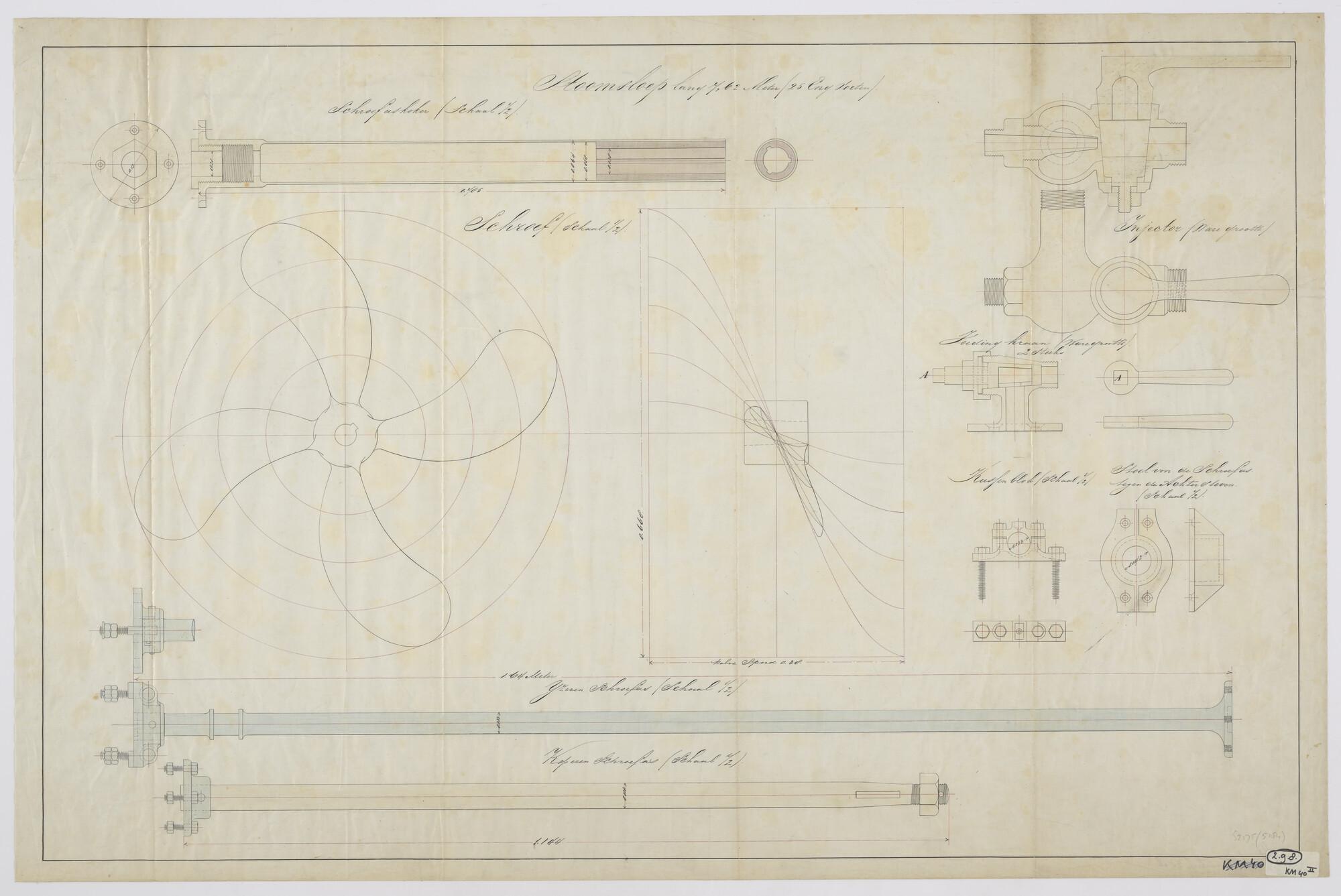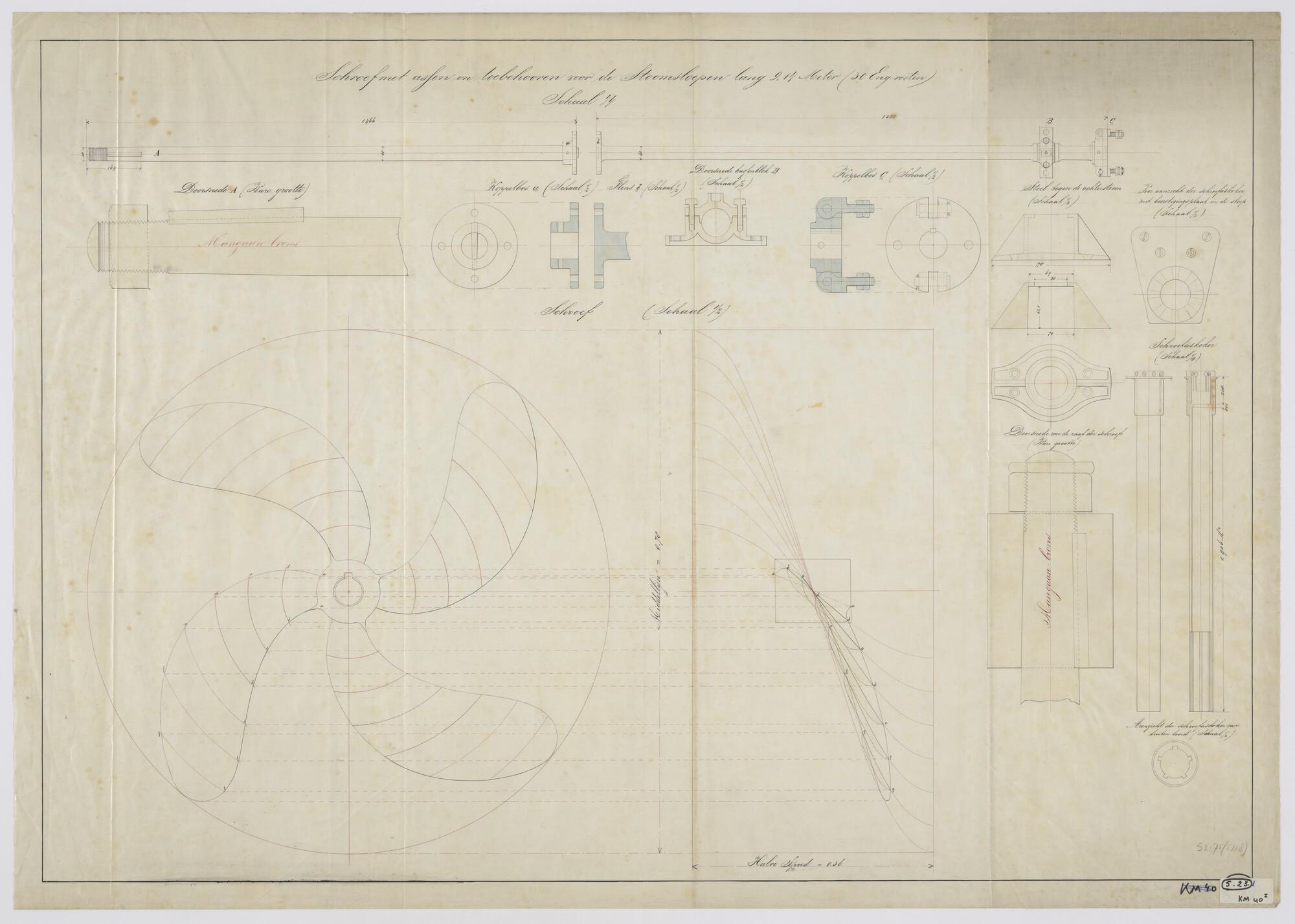 Aanzichten en doorsneden van de schroef, schroefasse...
