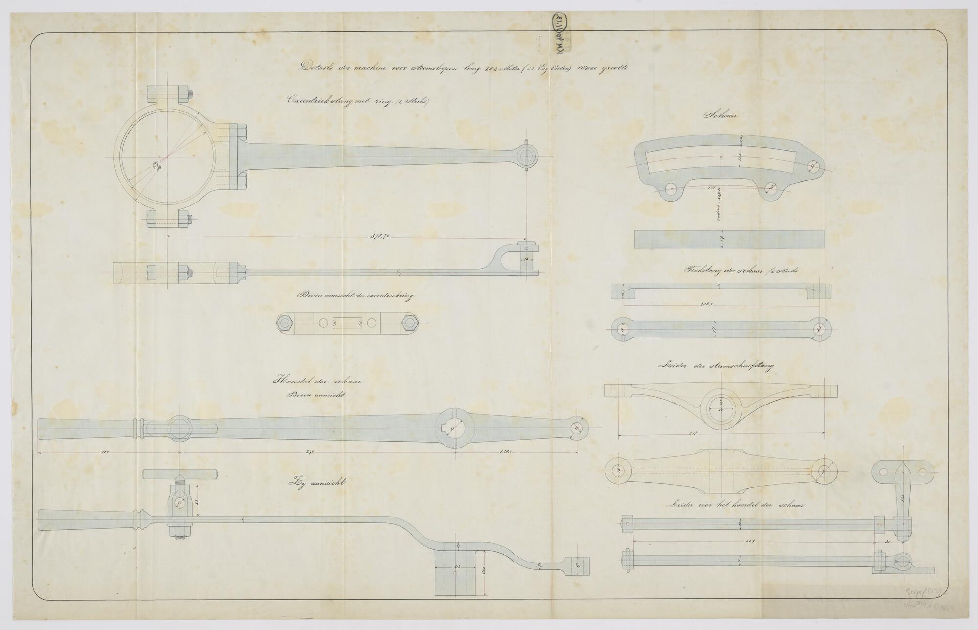 Aanzichten en doorsneden van de excentriekstang van ...