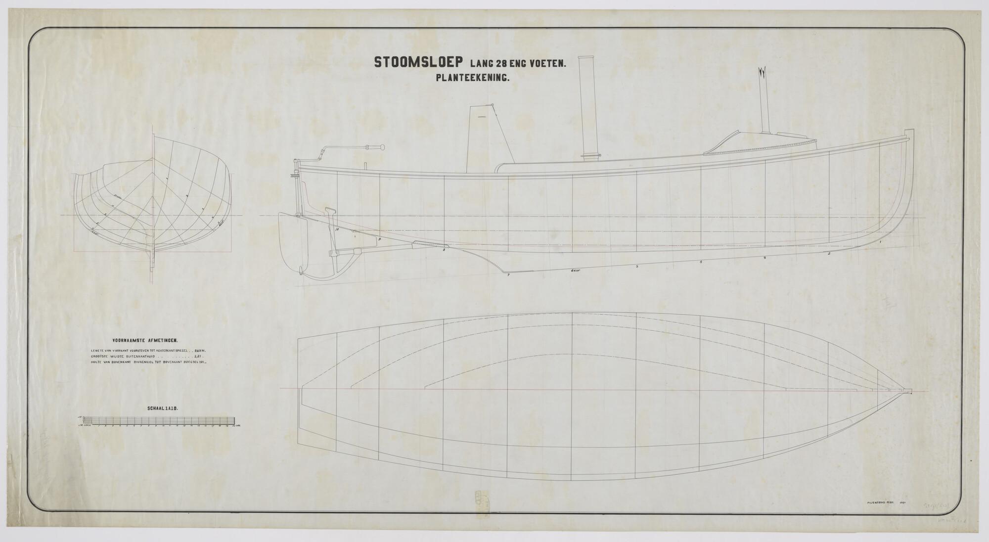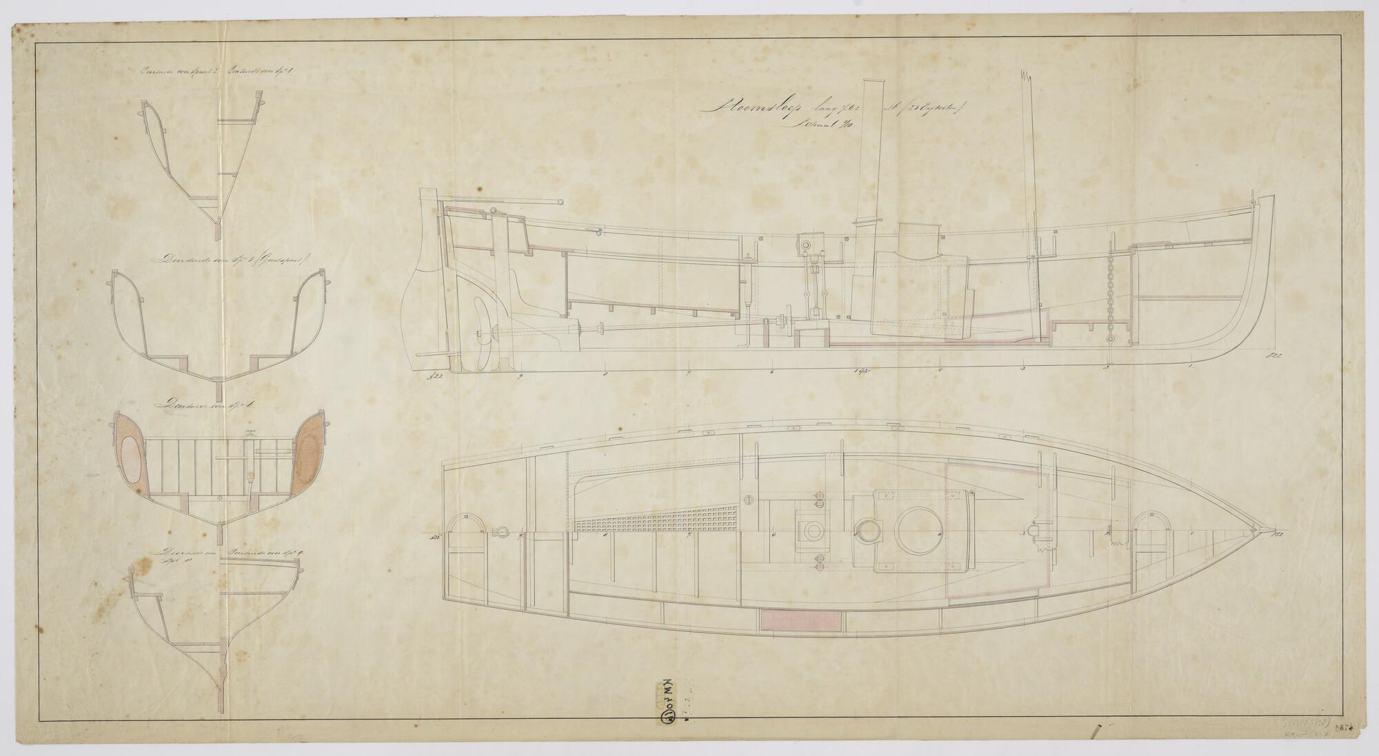 Doorsneden van de bewapende stoomsloep lang 28' met ...