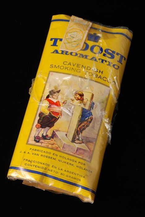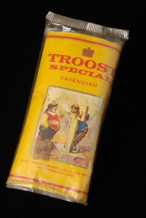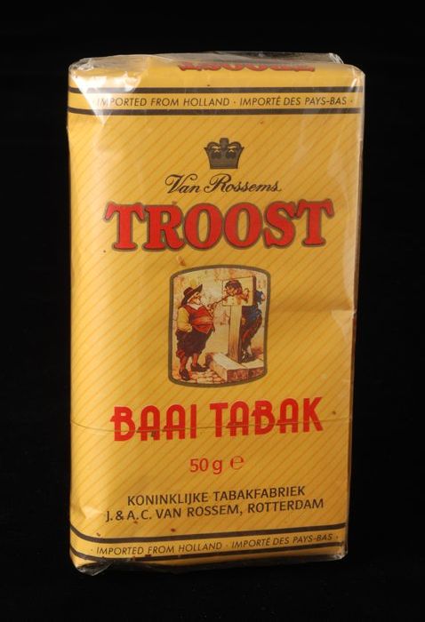 Geel pakje tabak van Van Rossem, productnaam Troost ...