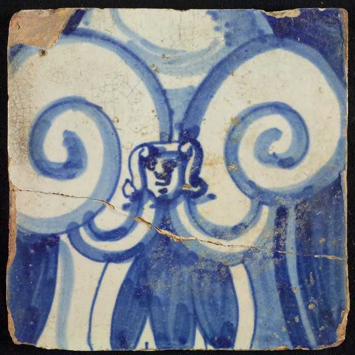 Tegel van schoorsteenpilaster, blauw op wit, gestile...