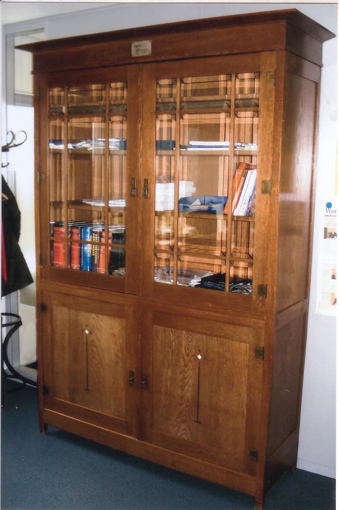 boekenkast, Onder den St. Maarten. Eikenhout, gedeco...