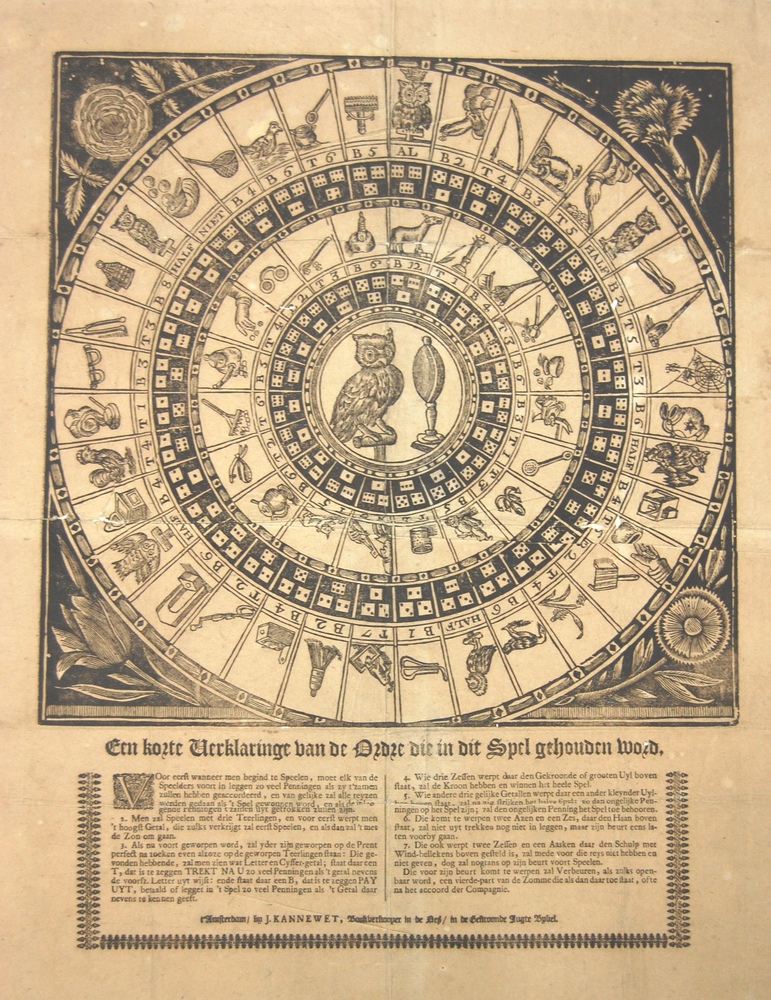 prent met het Uilenspel. Concentrische cirkels met i...