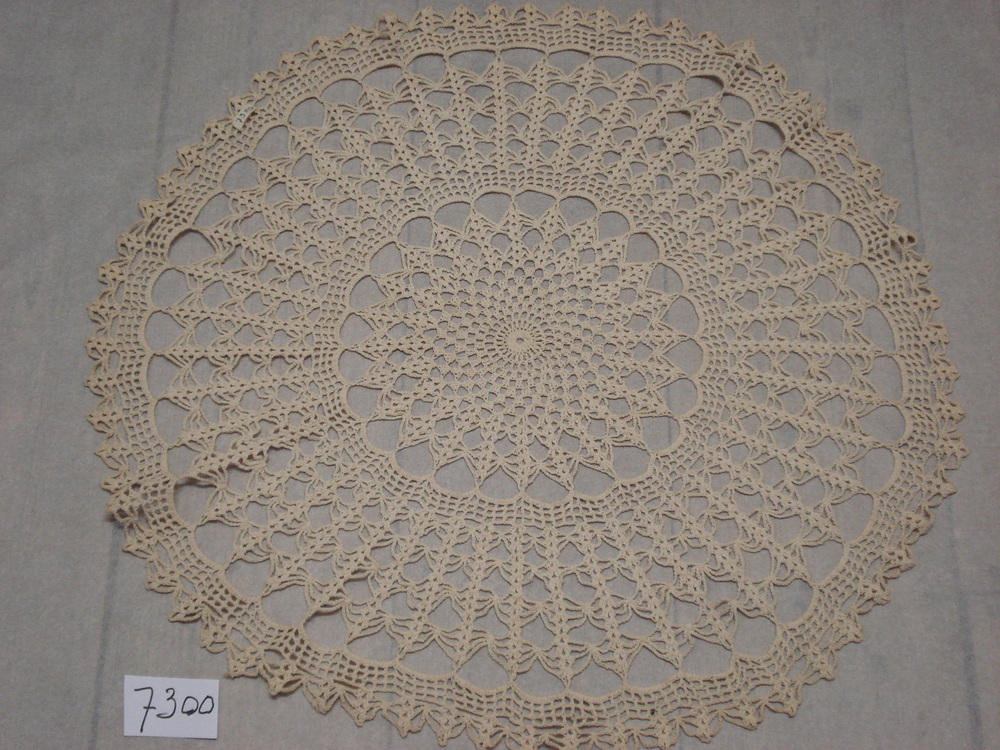 Kleedje van wit gehaakt katoen, rond in stokjes en k...